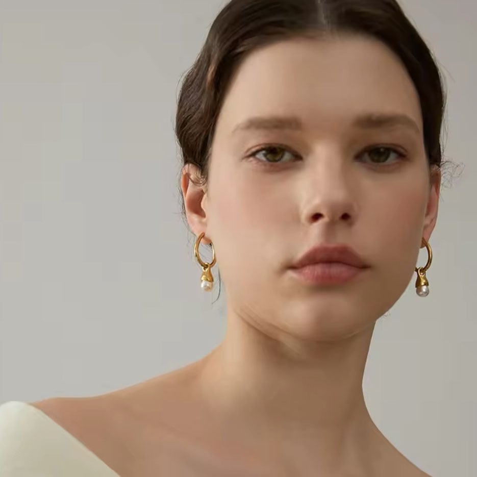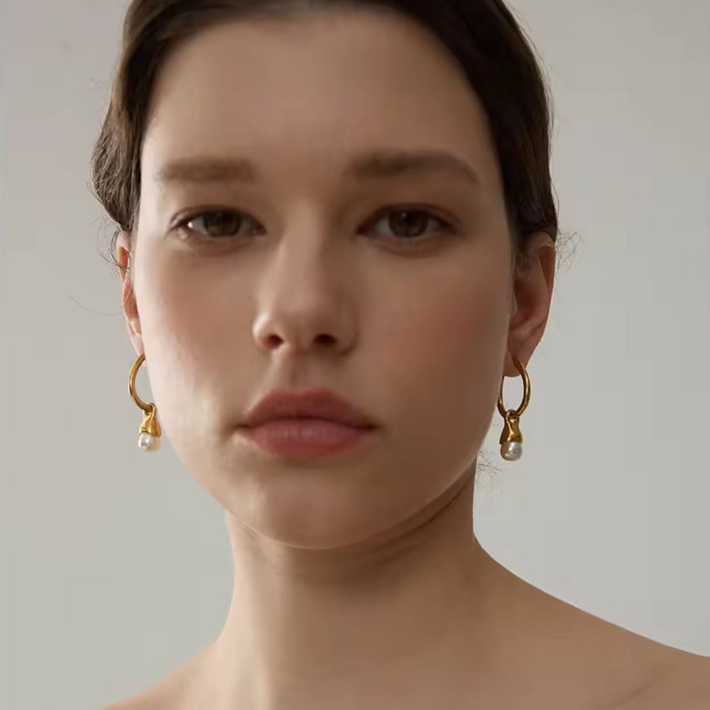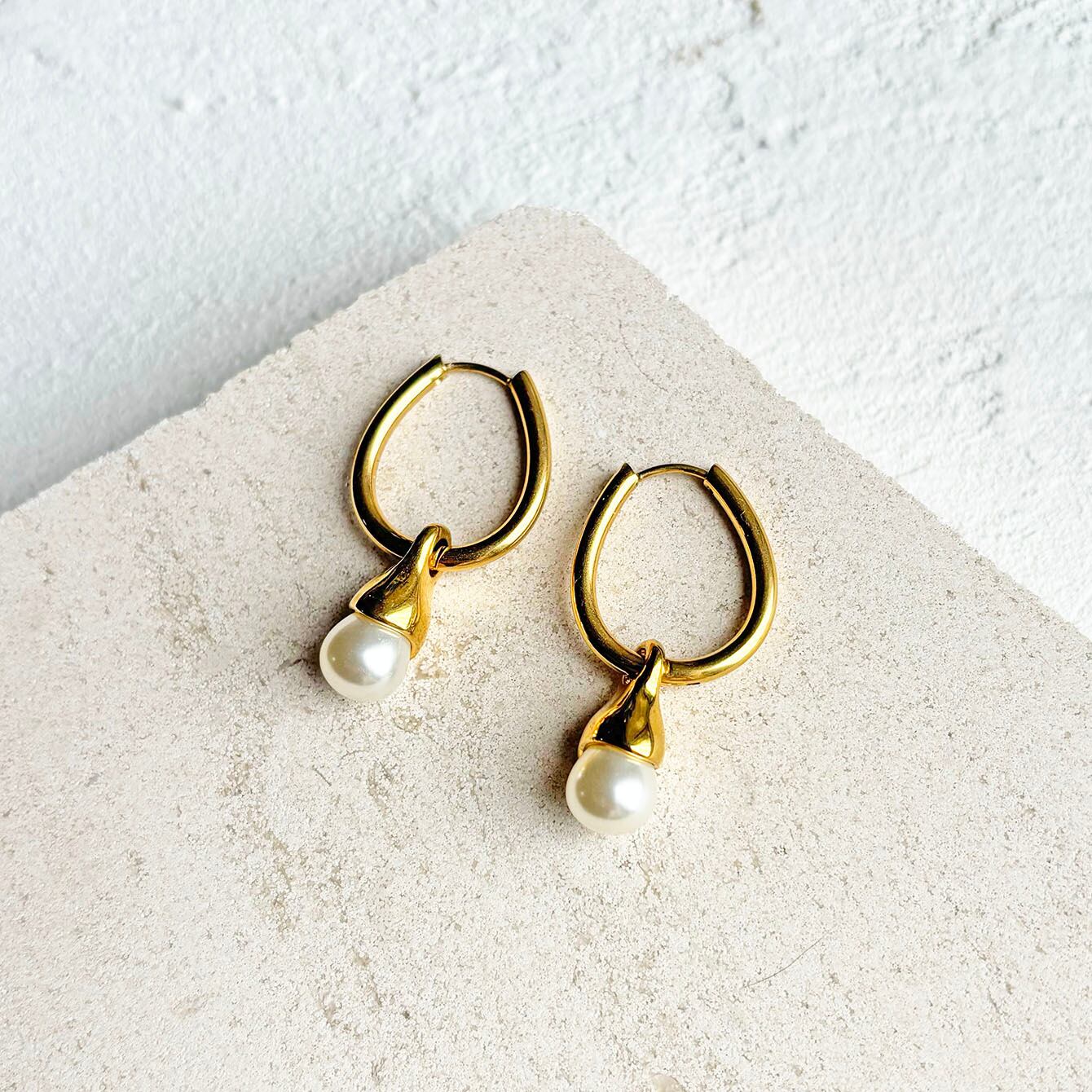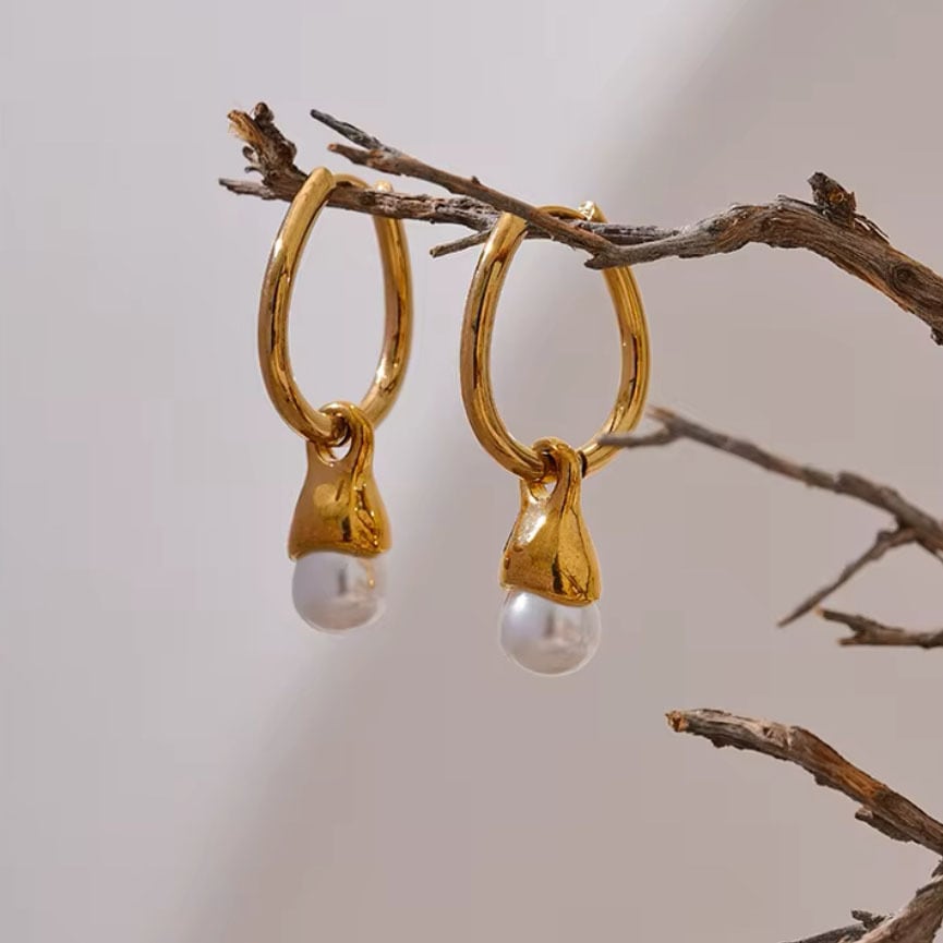 揺れるパールのステンレスピアス。フープピアスなので着け外しが簡単で、パールを外してもお使いいただける2WAYデザインです。