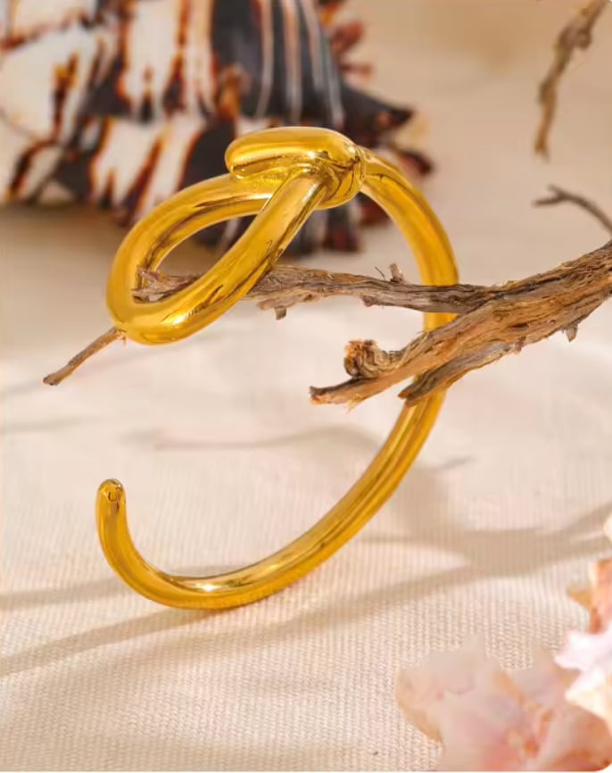 大胆なノット(結び目)デザインが目を引く、アートのような存在感を放つステンレス製バングル。