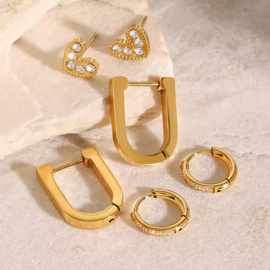 遊び心と上品さを兼ね備えた、ゴールドの3セットピアス。