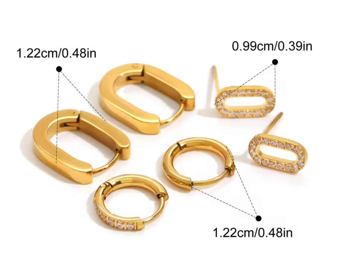 スクエアフープ、シンプルなラウンドフープ、煌めくストーンをあしらったオーバルスタッドの3種類が揃いました。