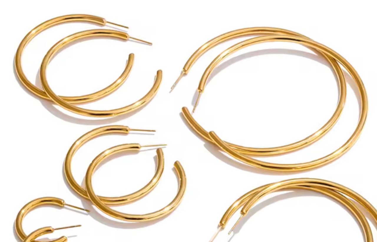 艶やかなゴールドが美しく輝く、ミニマルデザインのフープピアス。