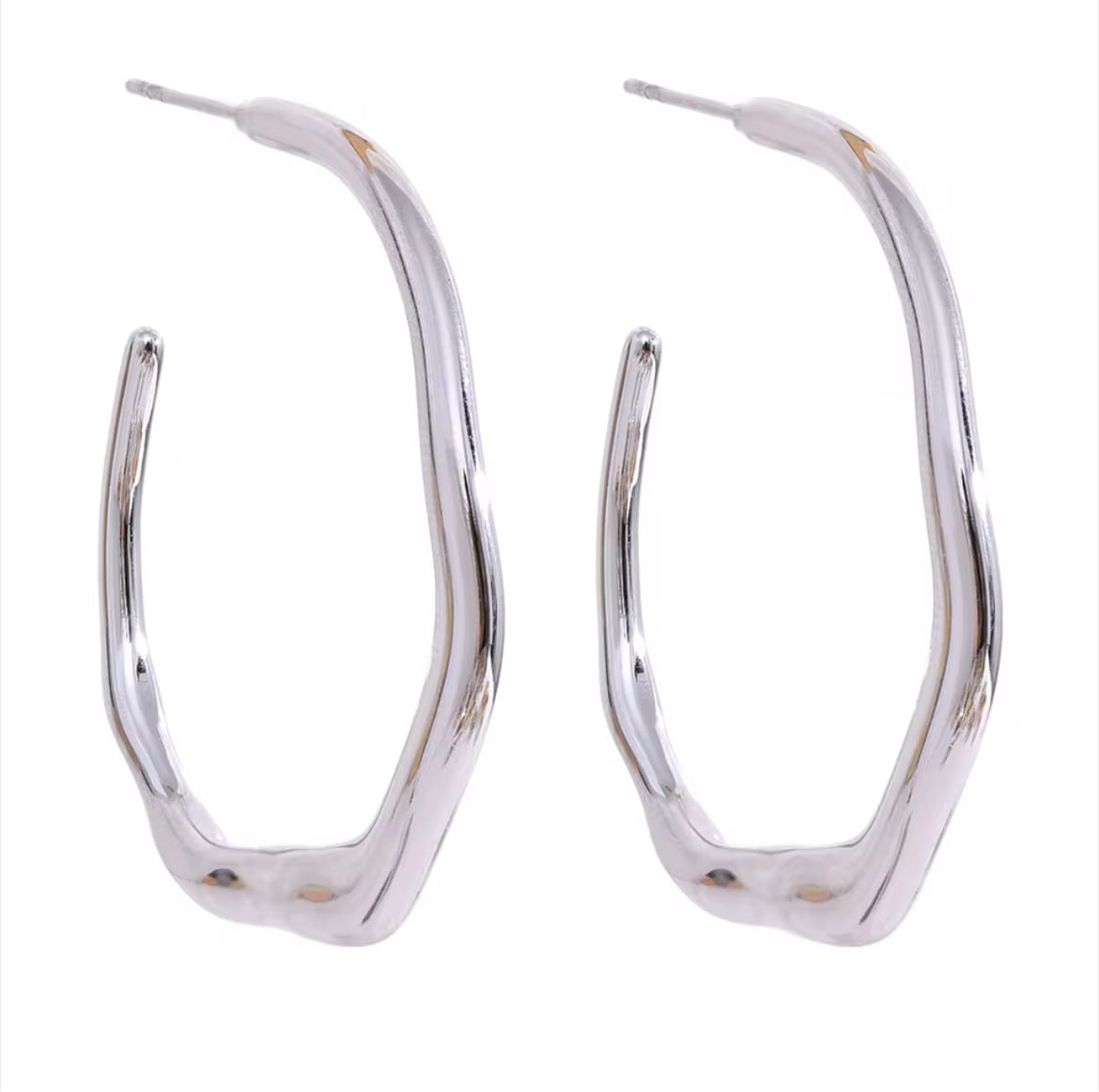 しなやかなラインが美しいアートなデザインのゴールドピアス。