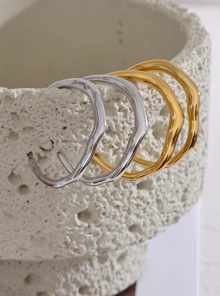 素材は肌に優しいステンレス。汗や水に強く、長時間つけても快適です。