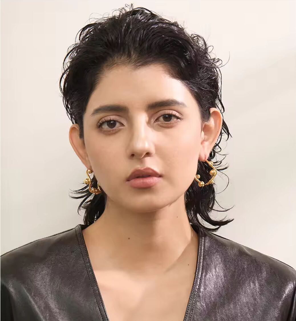 シンプルながらも遊び心のあるデザインで、顔まわりに立体的な輝きをプラスしてくれます。