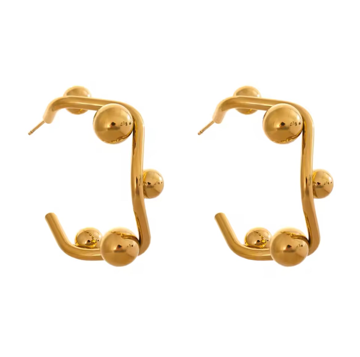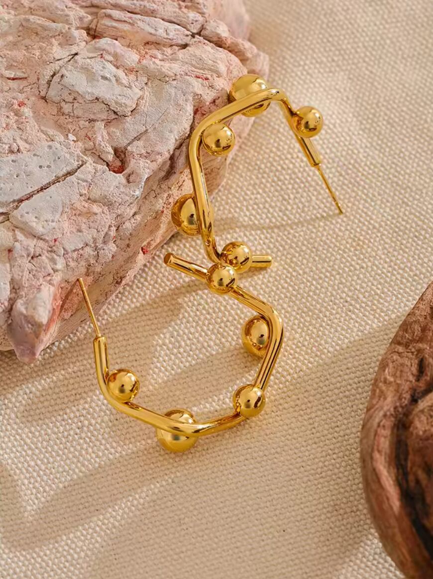 立体感のあるゴールドボールをランダムにあしらったモード感あふれるピアス。