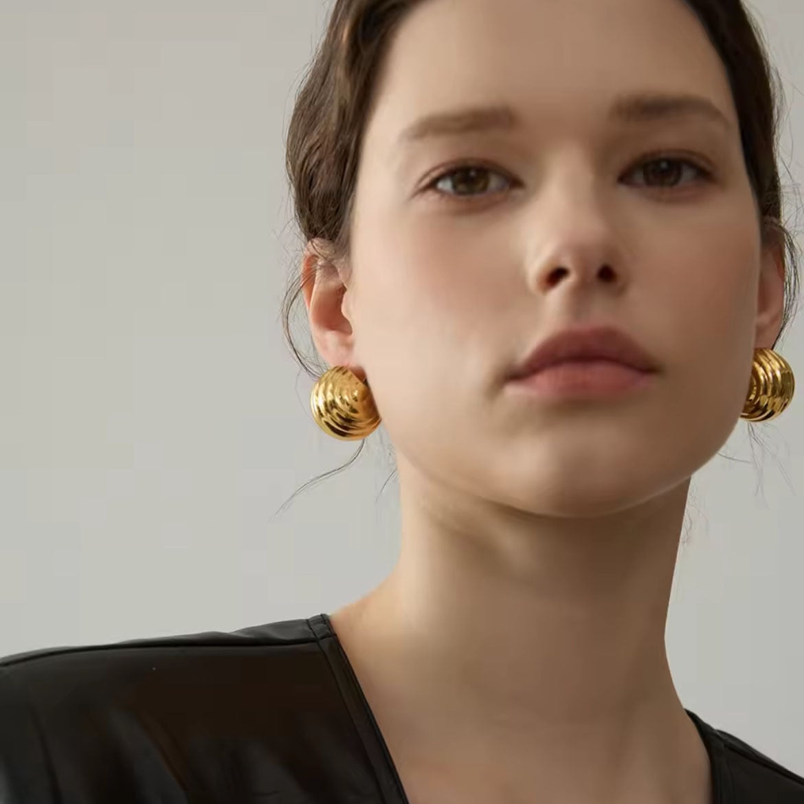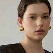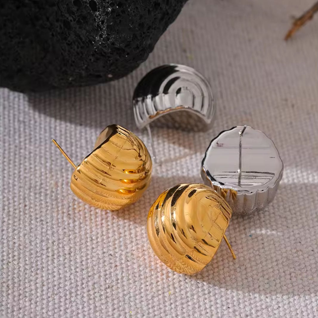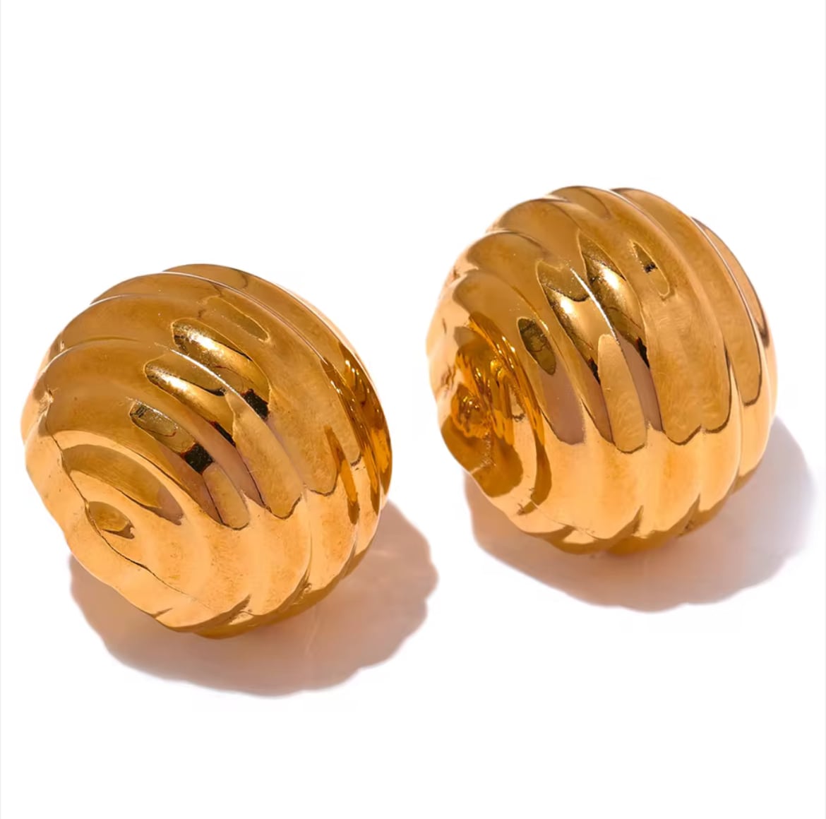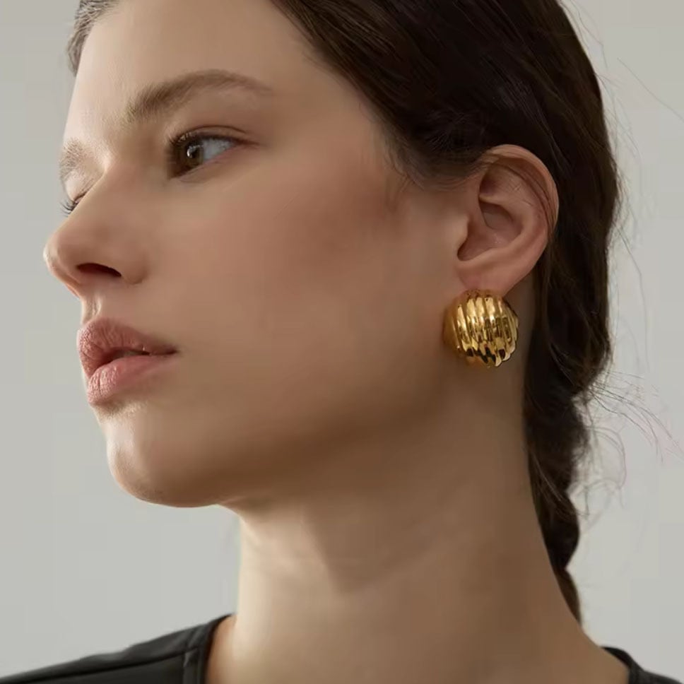 前から見るとコロンと丸く見えるステンレスピアス。耳たぶを覆うようなデザインで、おしゃれで可愛い印象です。サイズは大きすぎず、小さすぎず、とても付けやすい大きさです。