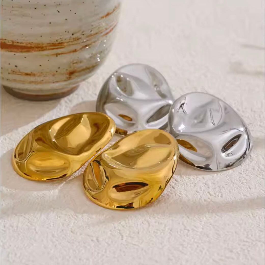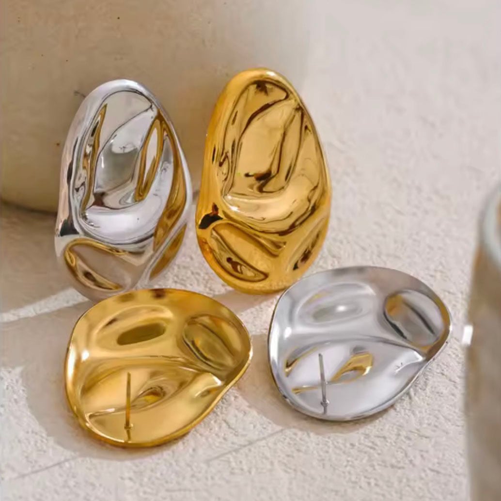 不均一で有機的なフォルムが印象的なオーバルピアス。