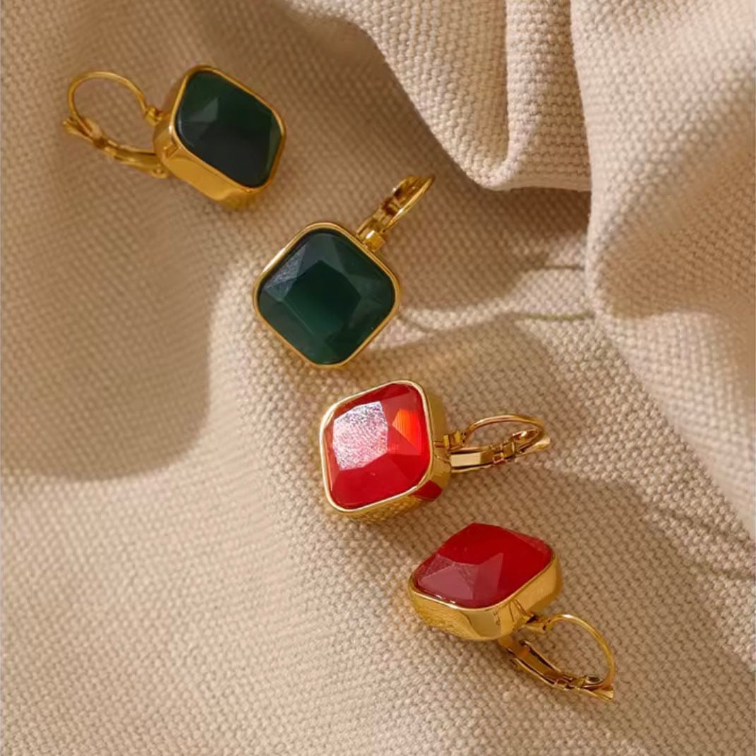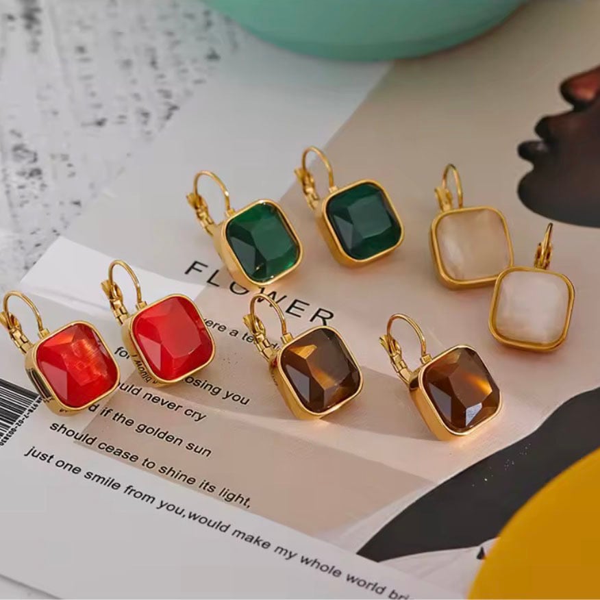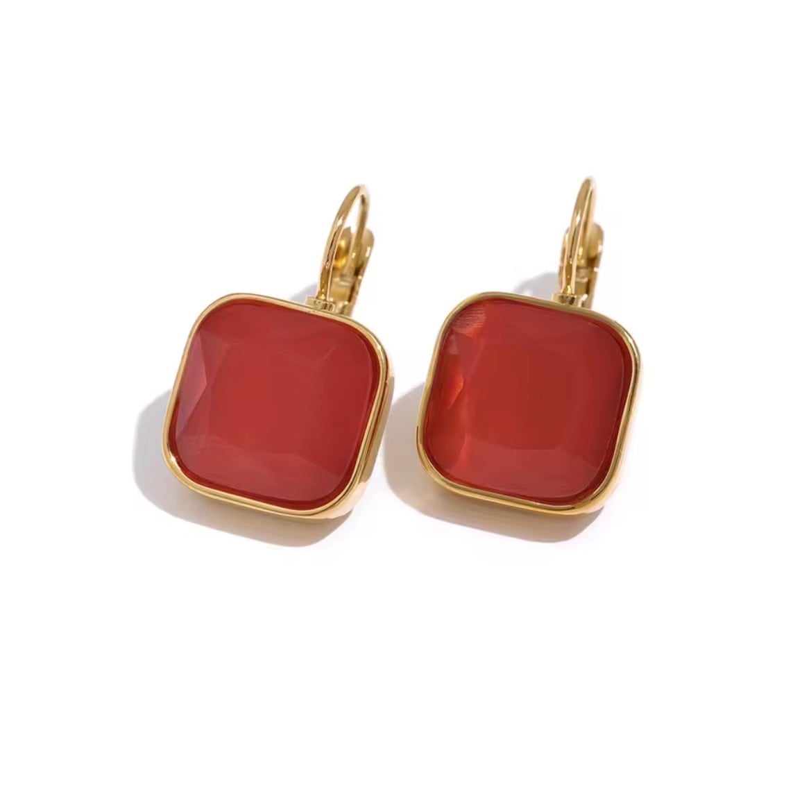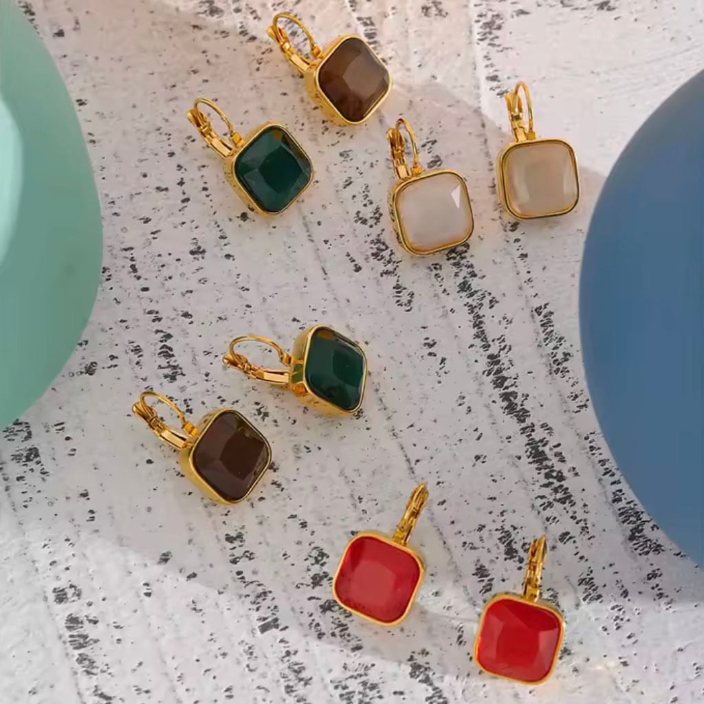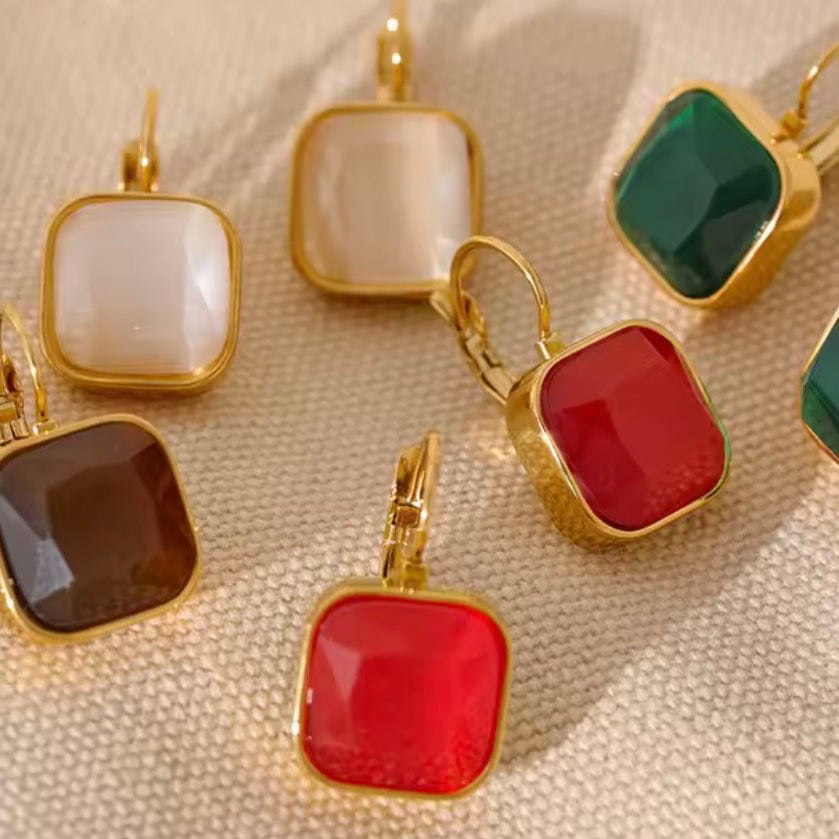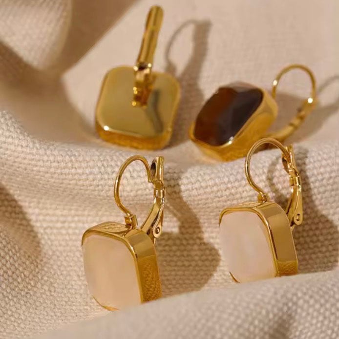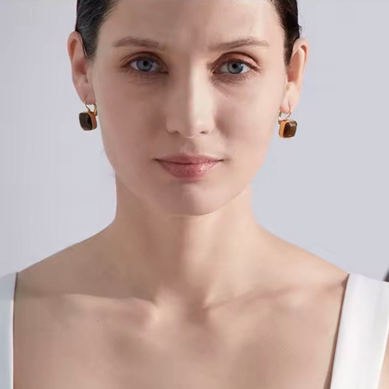 角を落としたスクエアフォルムが、耳元に洗練された印象を与えます。