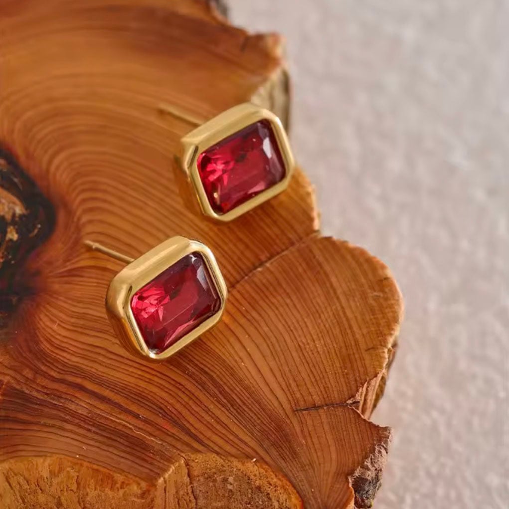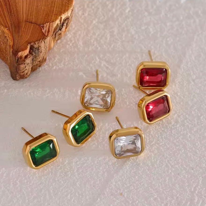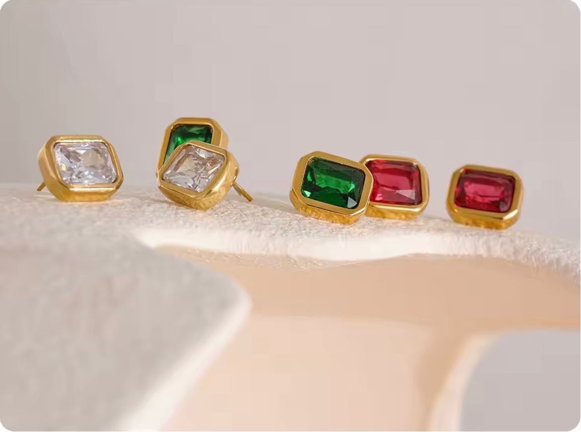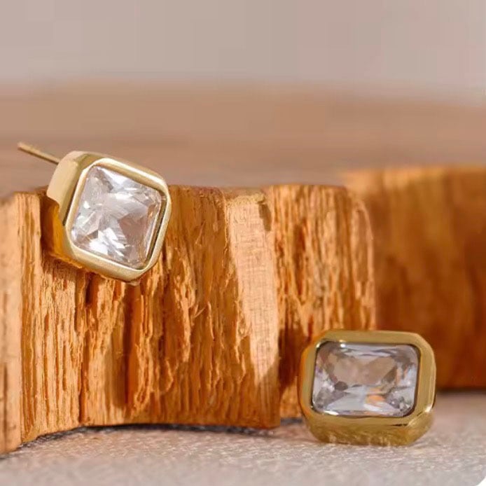 直線と余白が美しく調和する、スクエアフォルムのスタッドピアス。