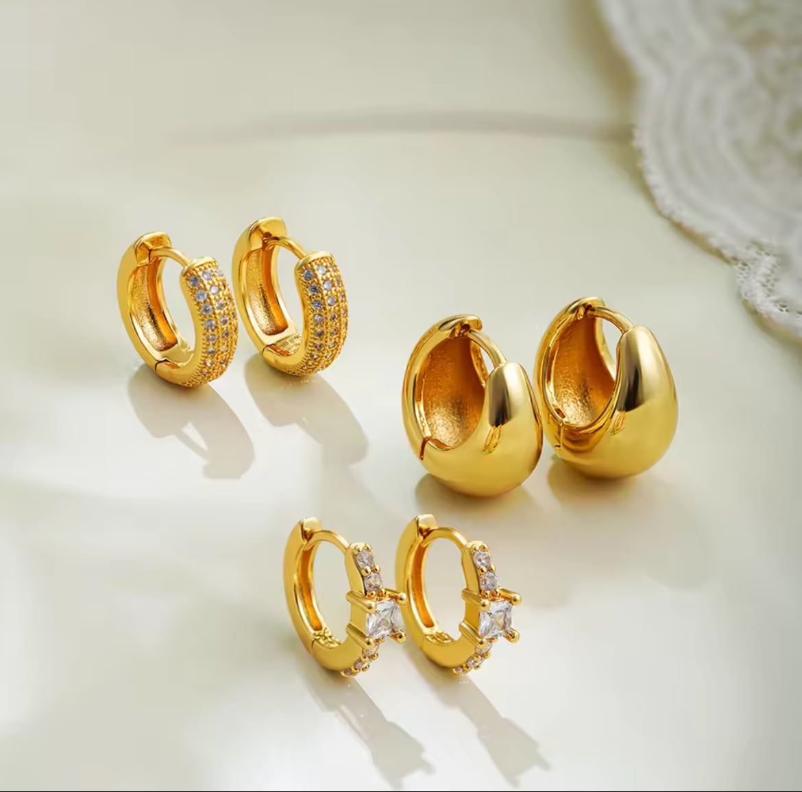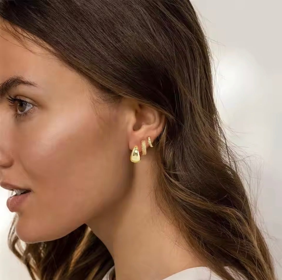異なるデザインを楽しめるフープピアスセット。