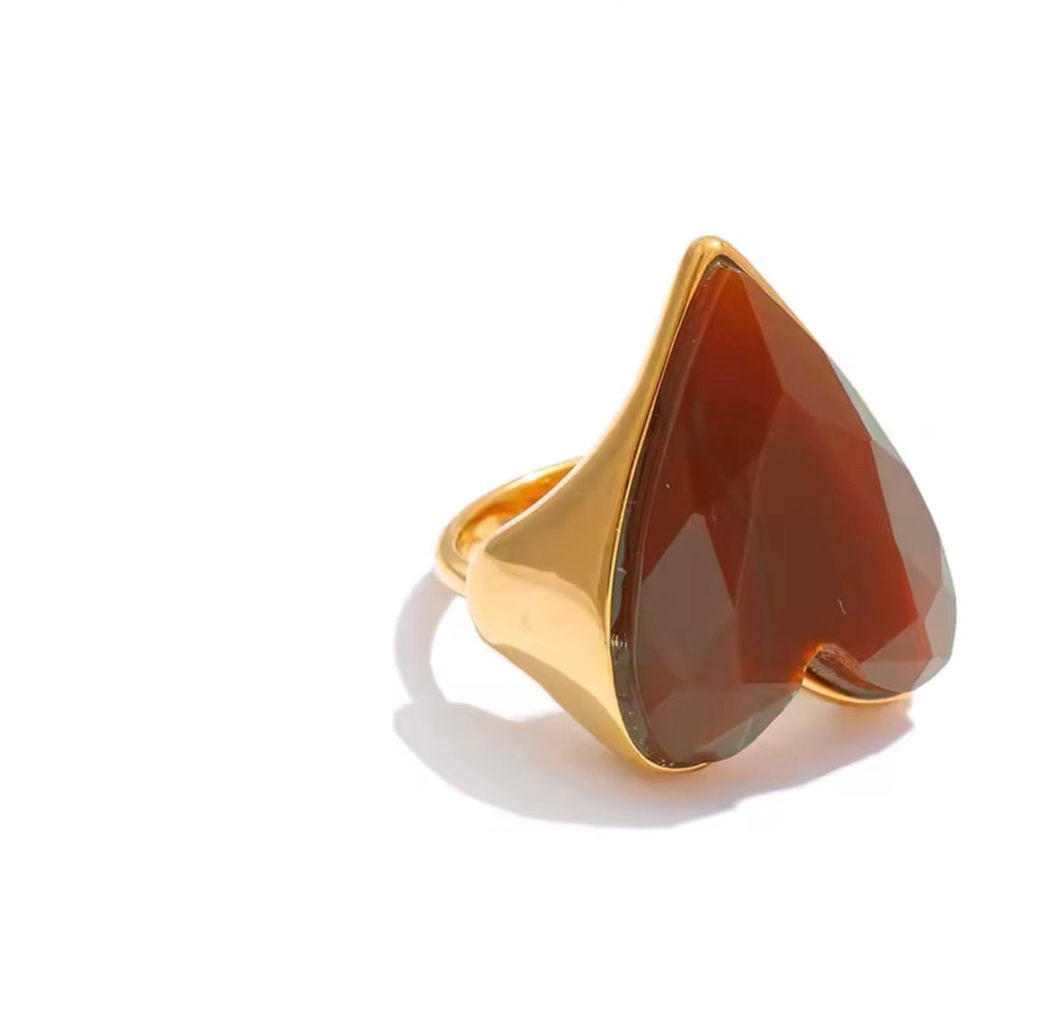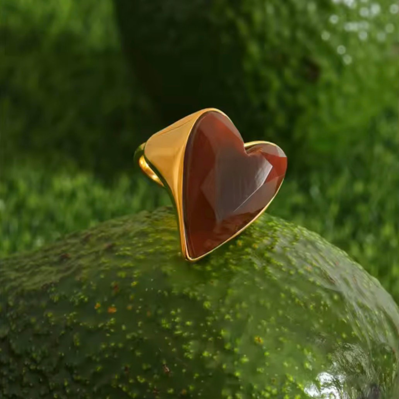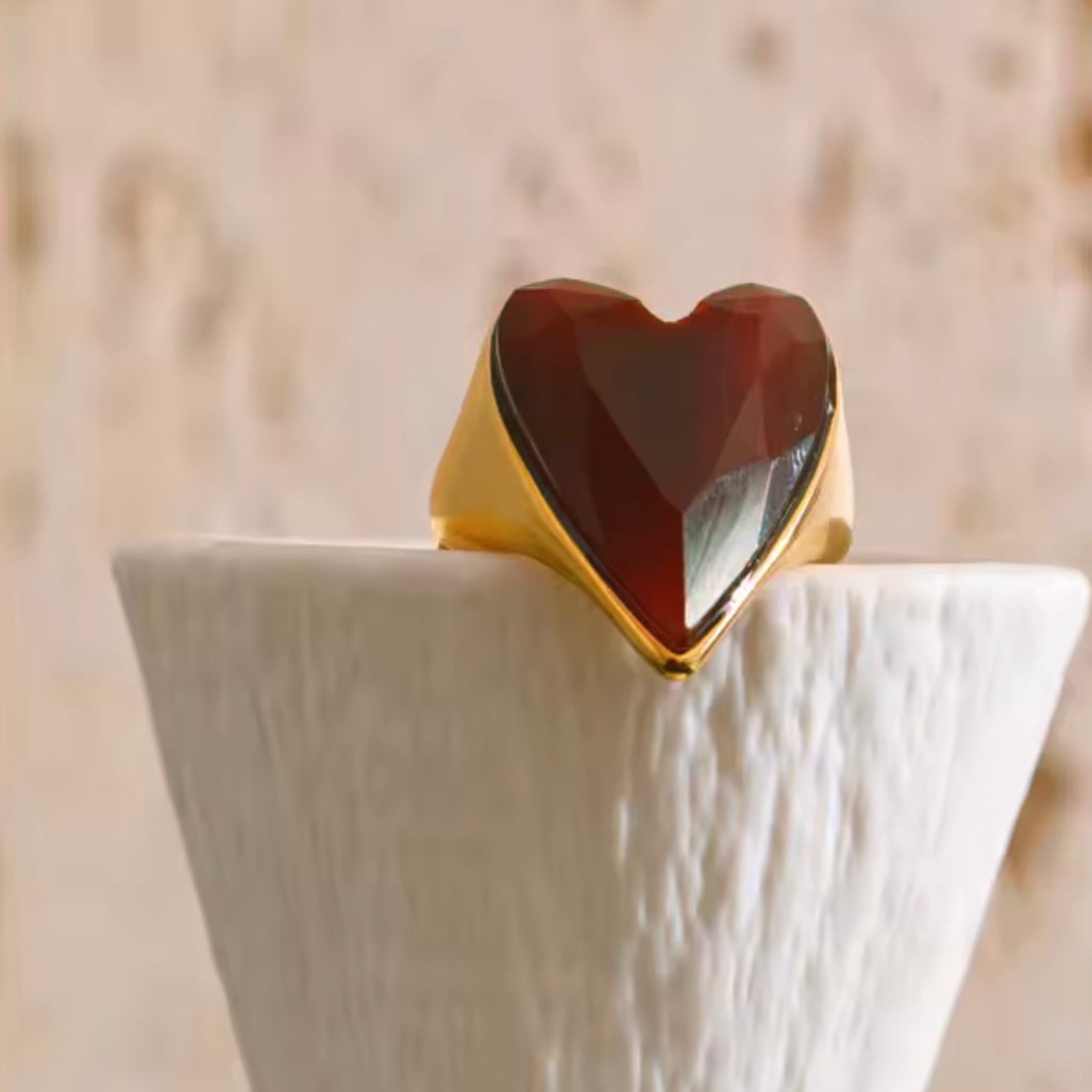 深みのあるレッドブラウンカラーが印象的な、ハートモチーフリング。