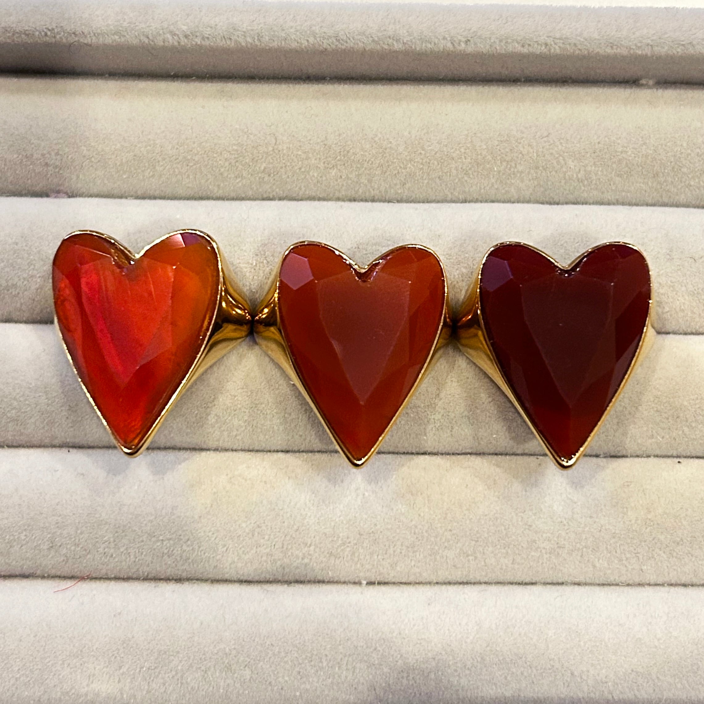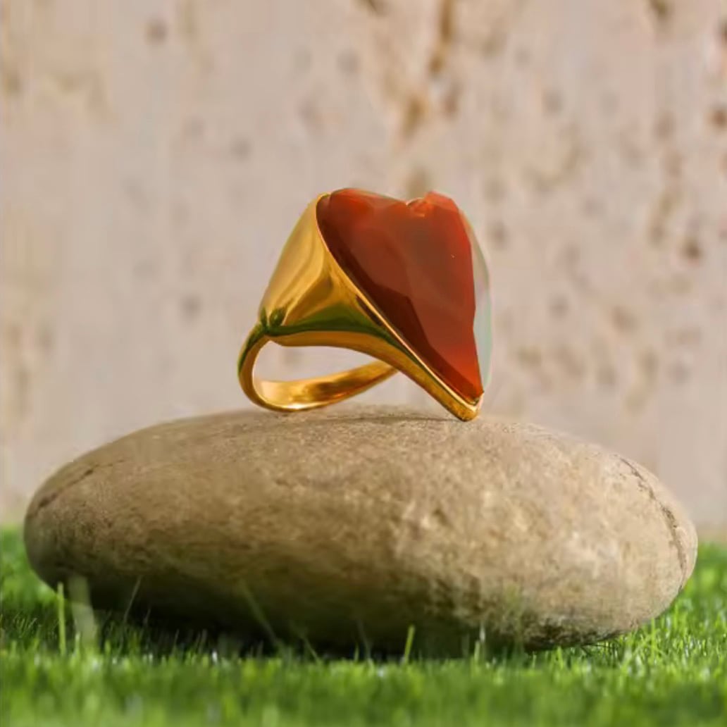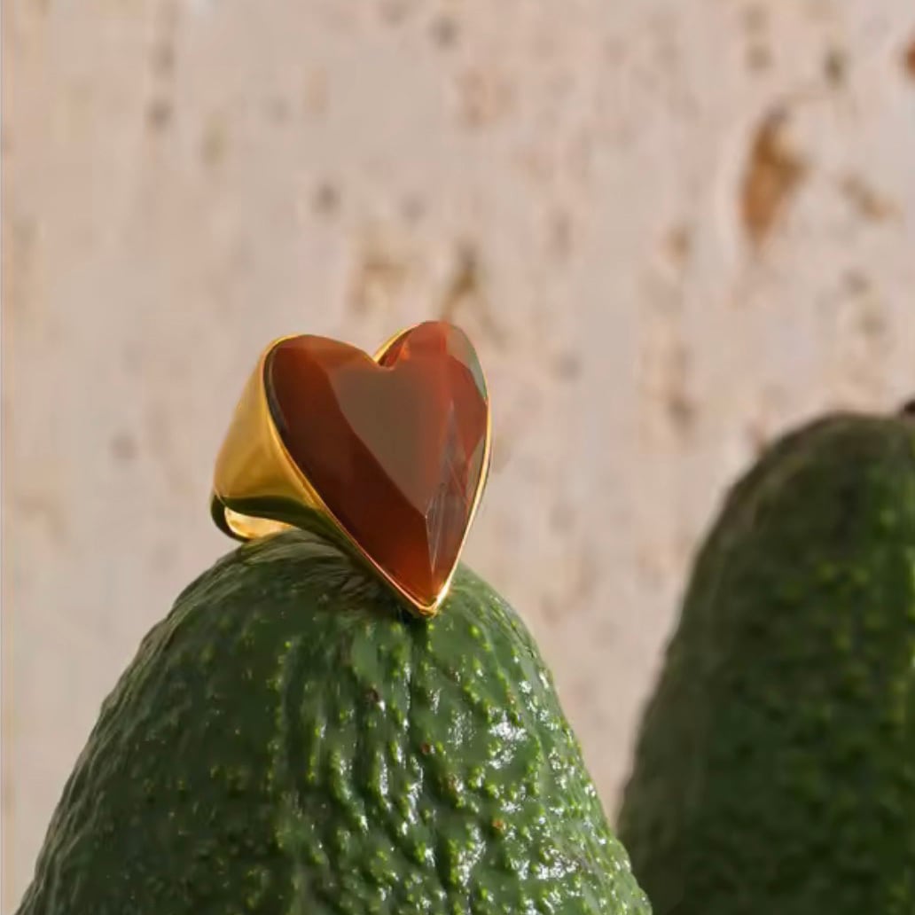 深みのあるレッドブラウンカラーが印象的な、ハートモチーフリング。