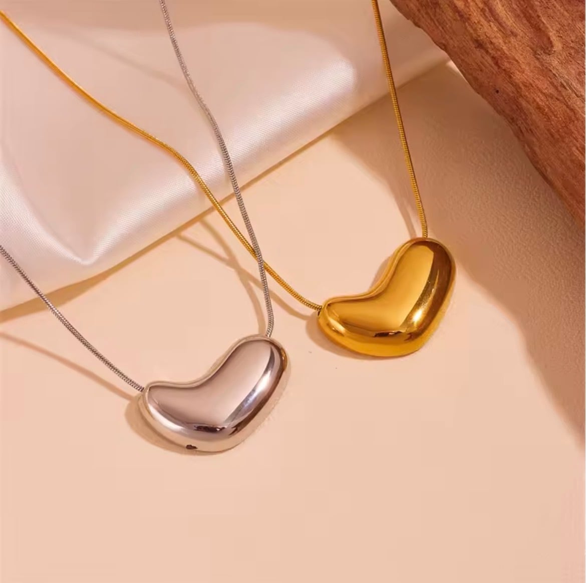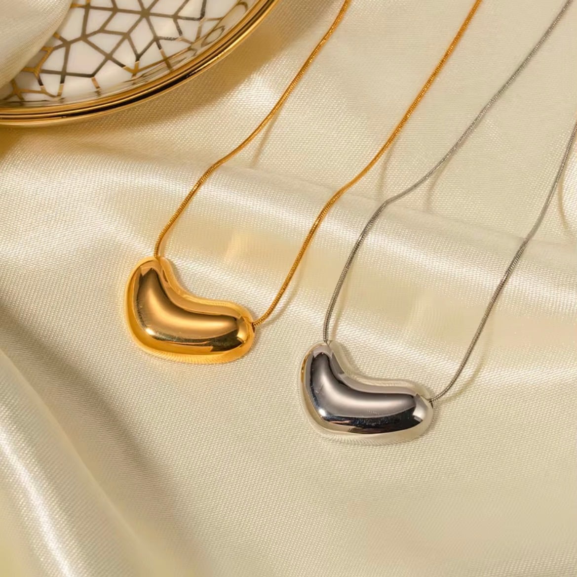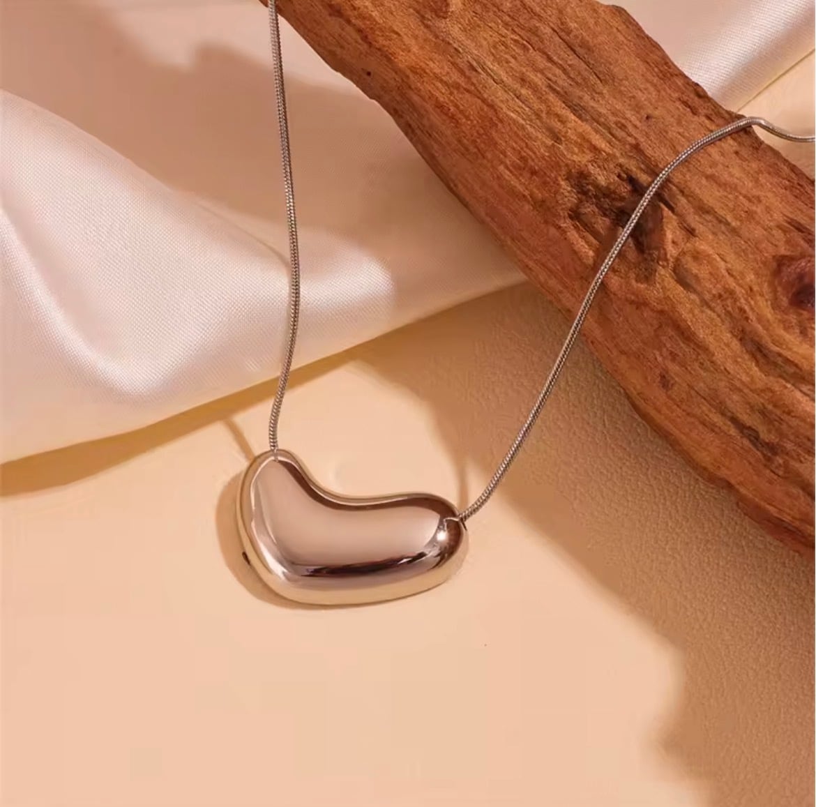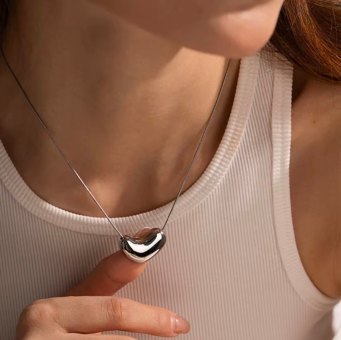 ハートのような有機的なフォルムのトップが胸元に自然な存在感を与え、シンプルな装いに洗練されたアクセントをプラスします。