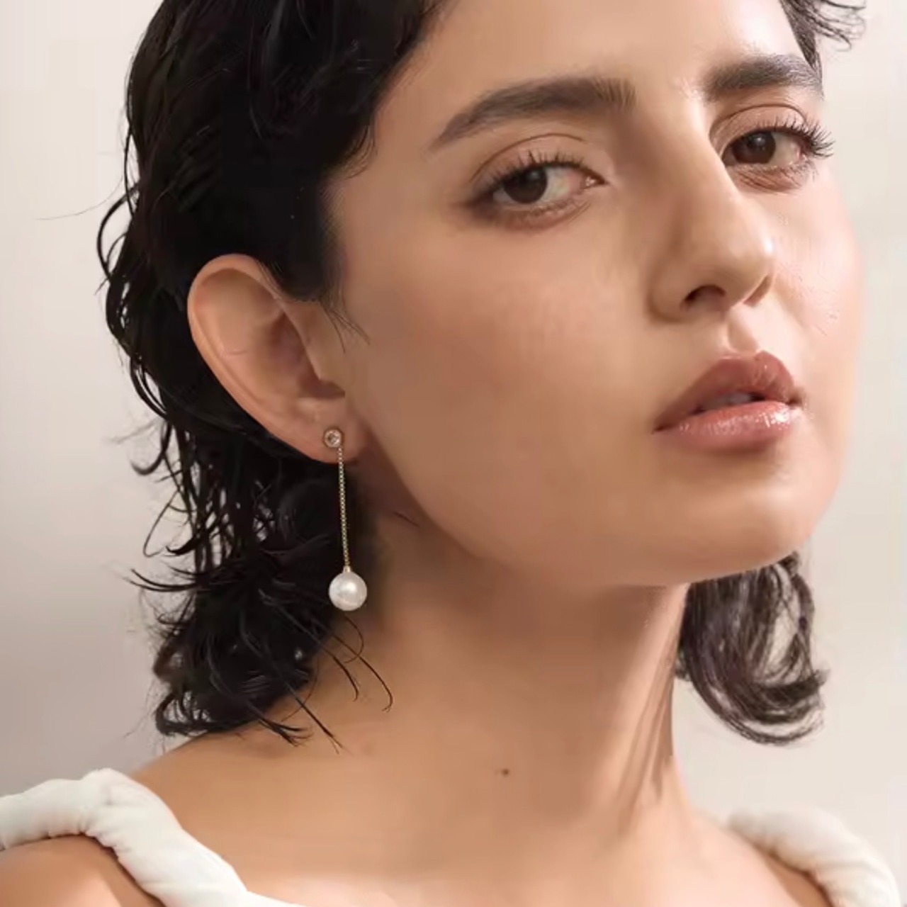 耳元で揺れるたび、縦ラインを強調し、顔まわりをすっきりと美しく見せてくれます。