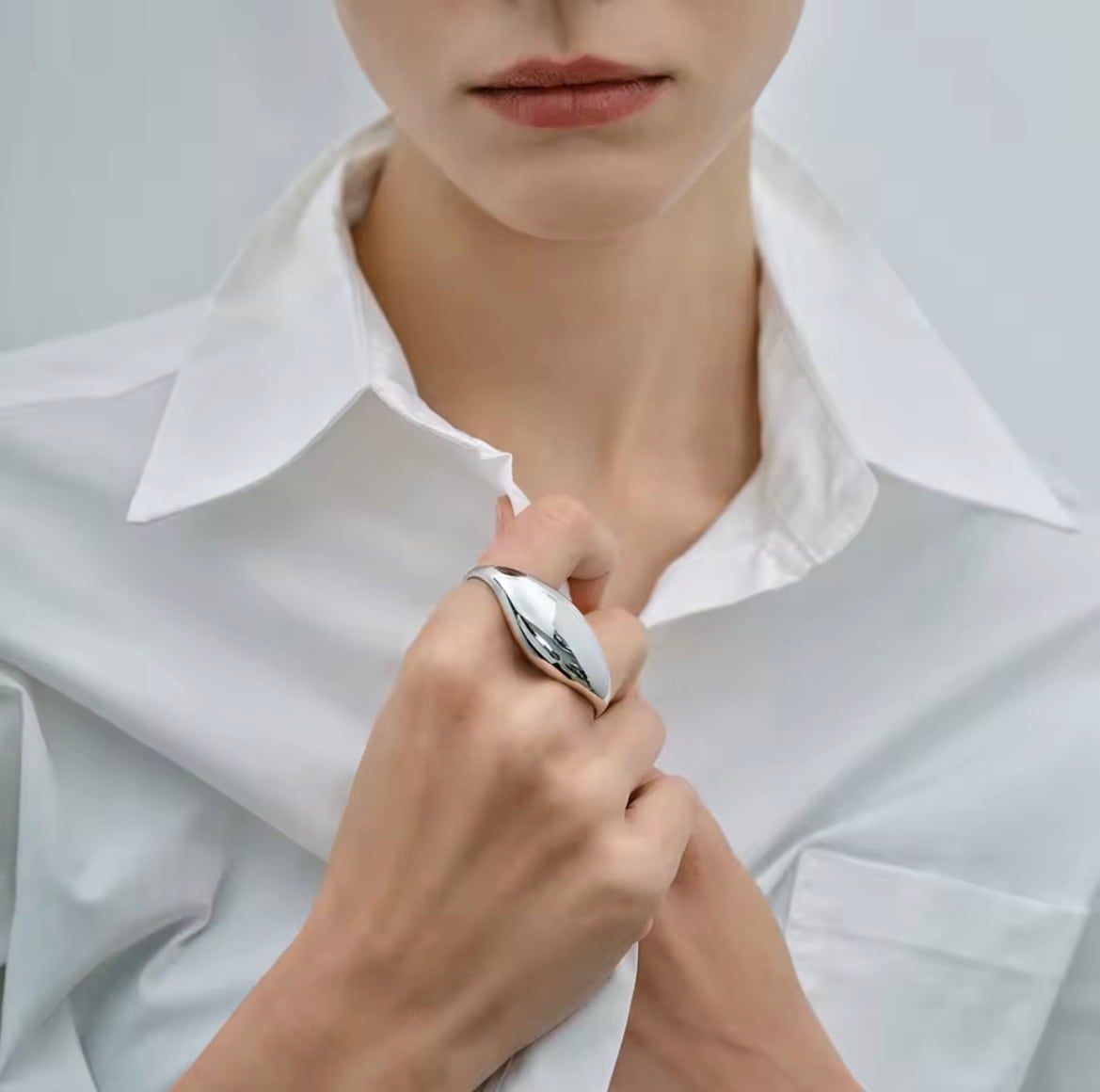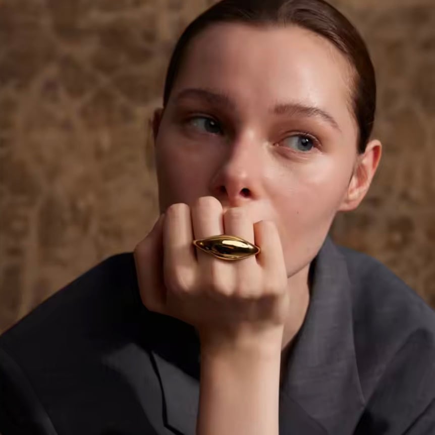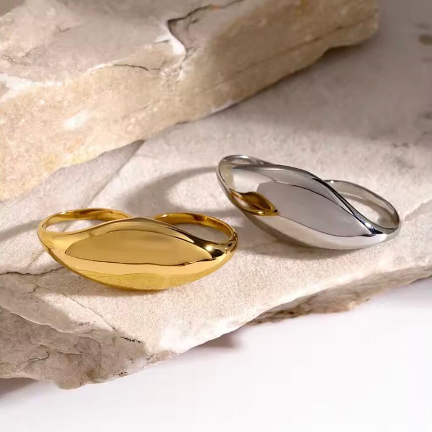 流れるような曲線フォルムと程よいボリューム感が、シンプルながらも洗練された印象を演出します。これひとつでコーディネートが完成する主役アイテム。抜け感と立体感があり、どの角度から見ても美しく手元を引き立てます。