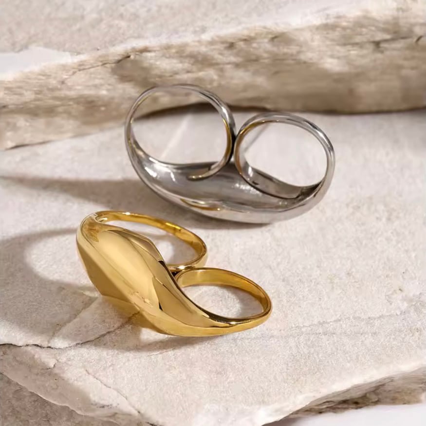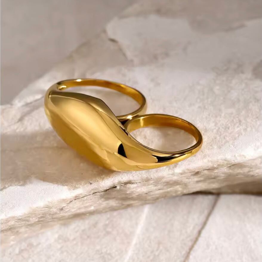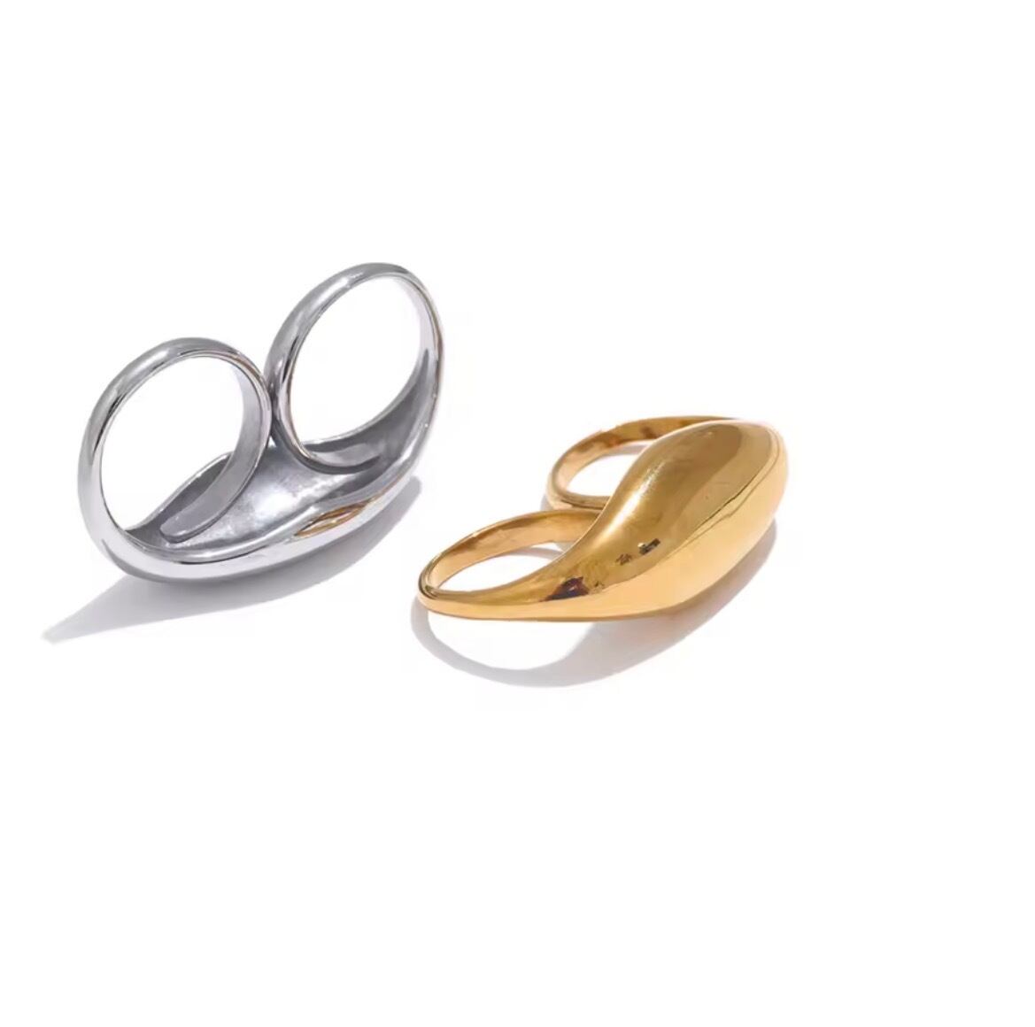 指元にモードな存在感をプラスする、ダブルラインデザインのリング。