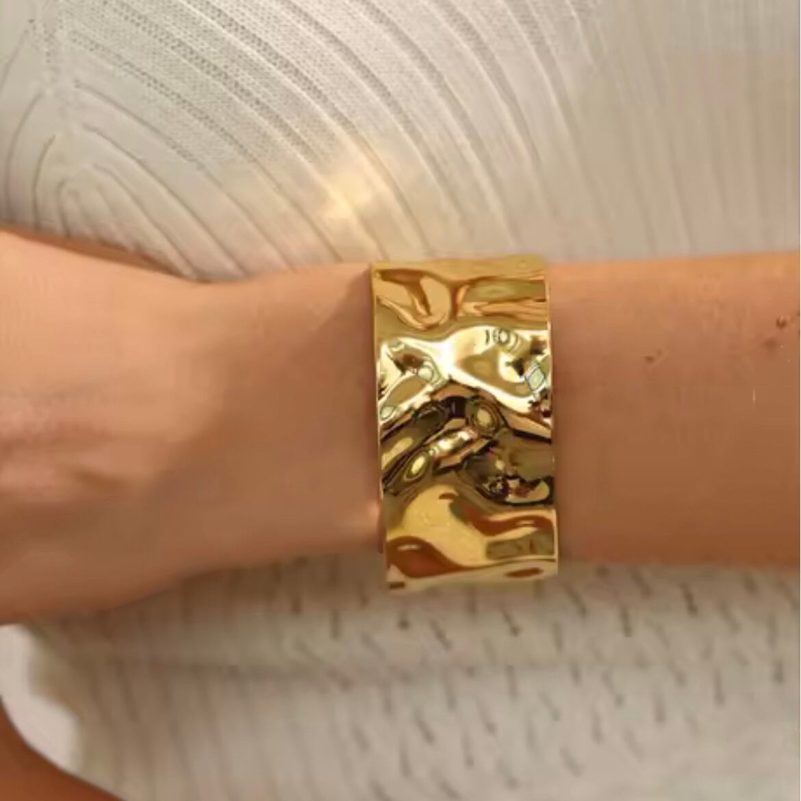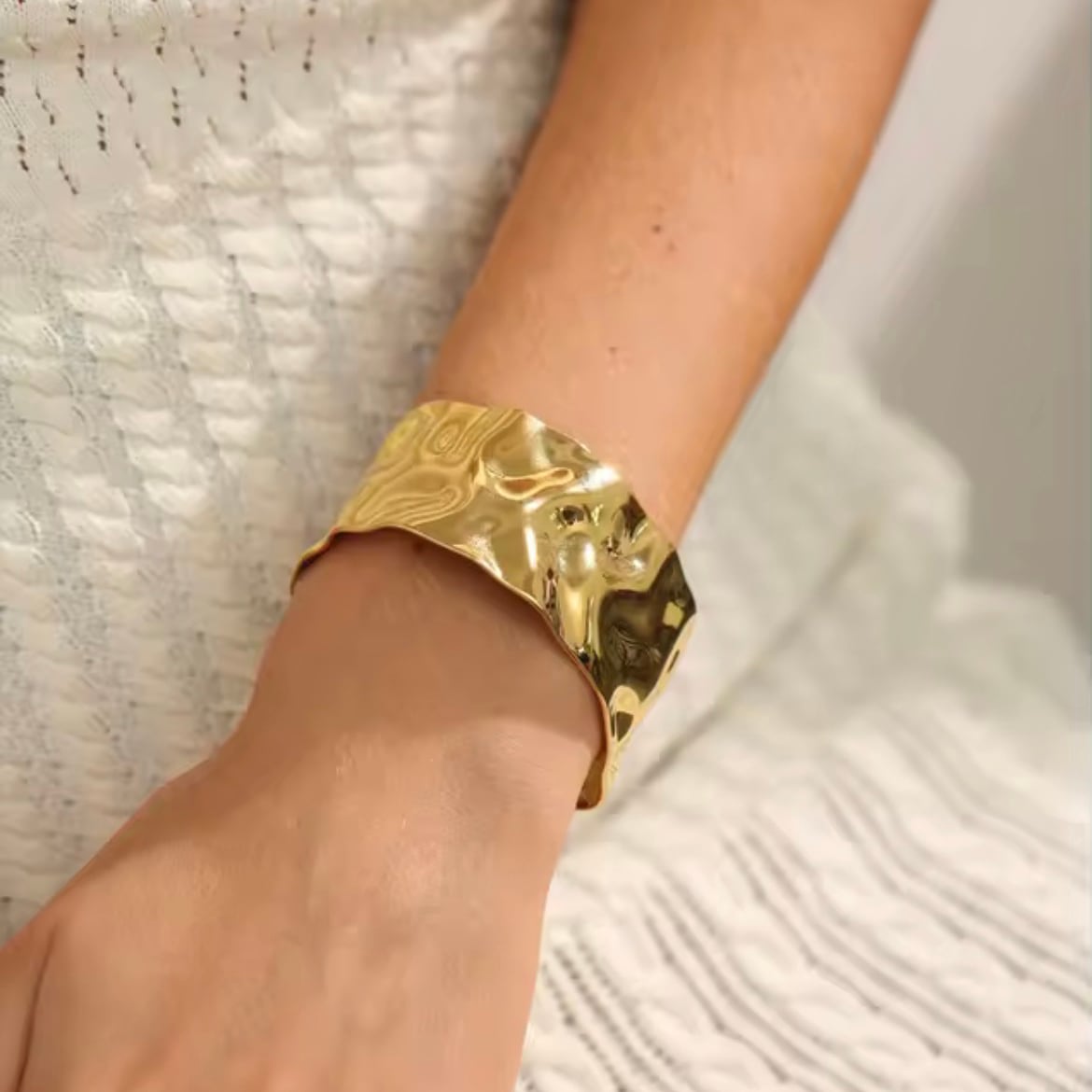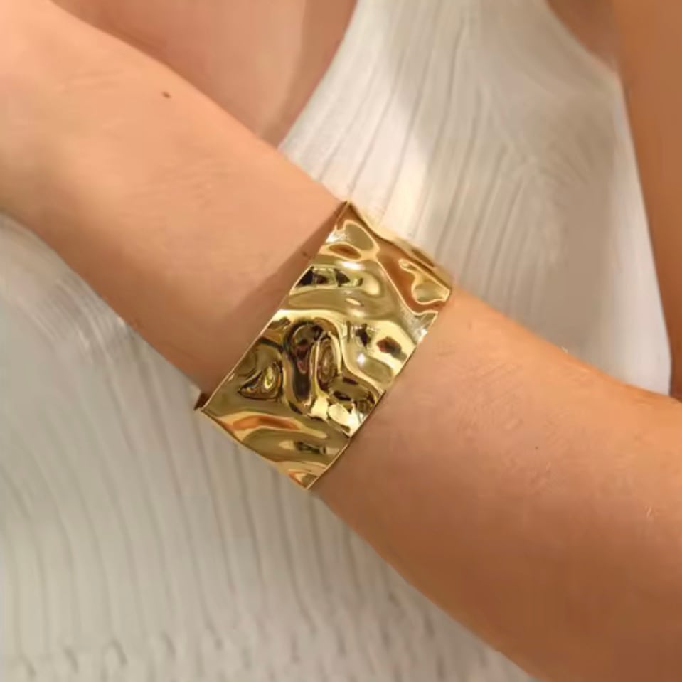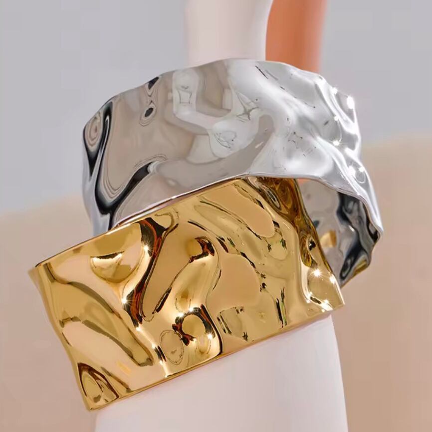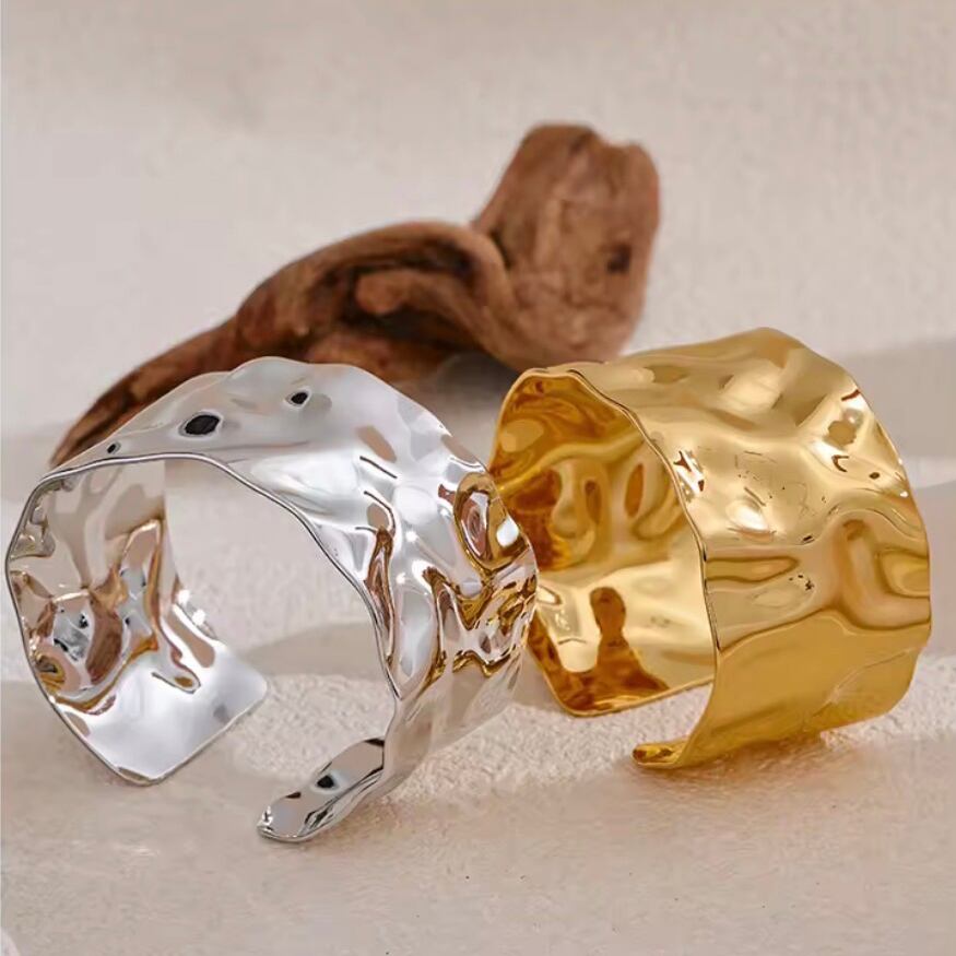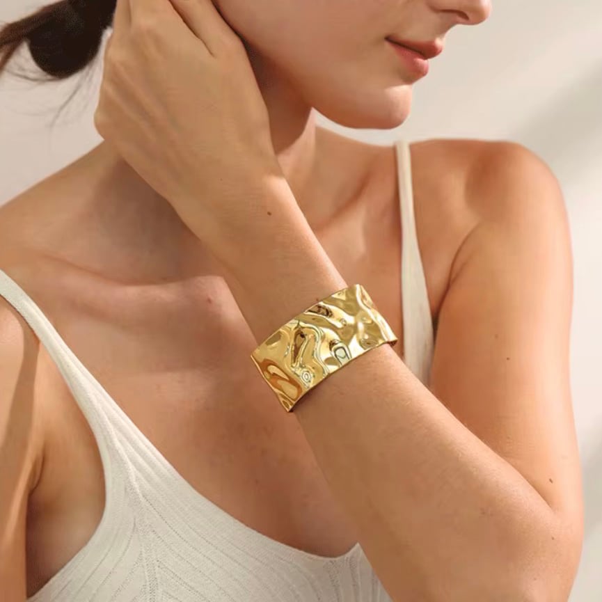 ニュアンス感のある打ったようなデザインが印象的なワイドバングル。