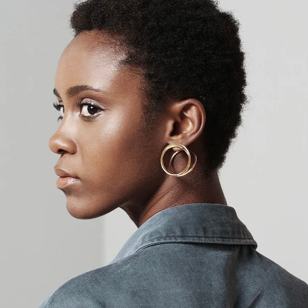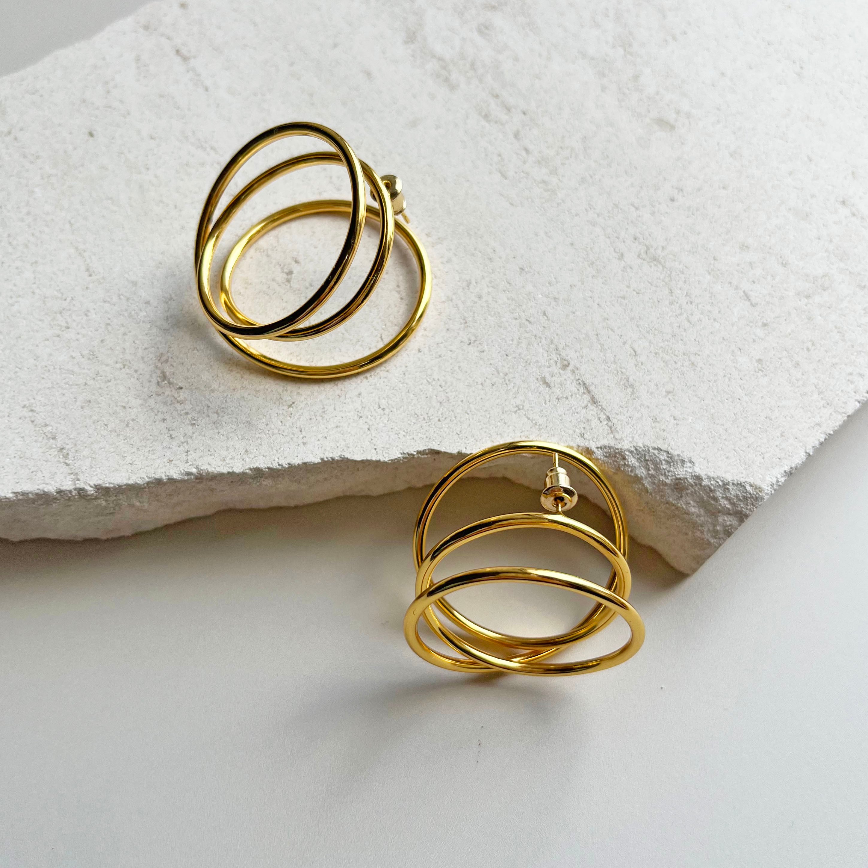個性あふれる18金コーティングピアス。立体感があり、くるくると耳を挟むようにデザインされたハイセンスなピアスです。