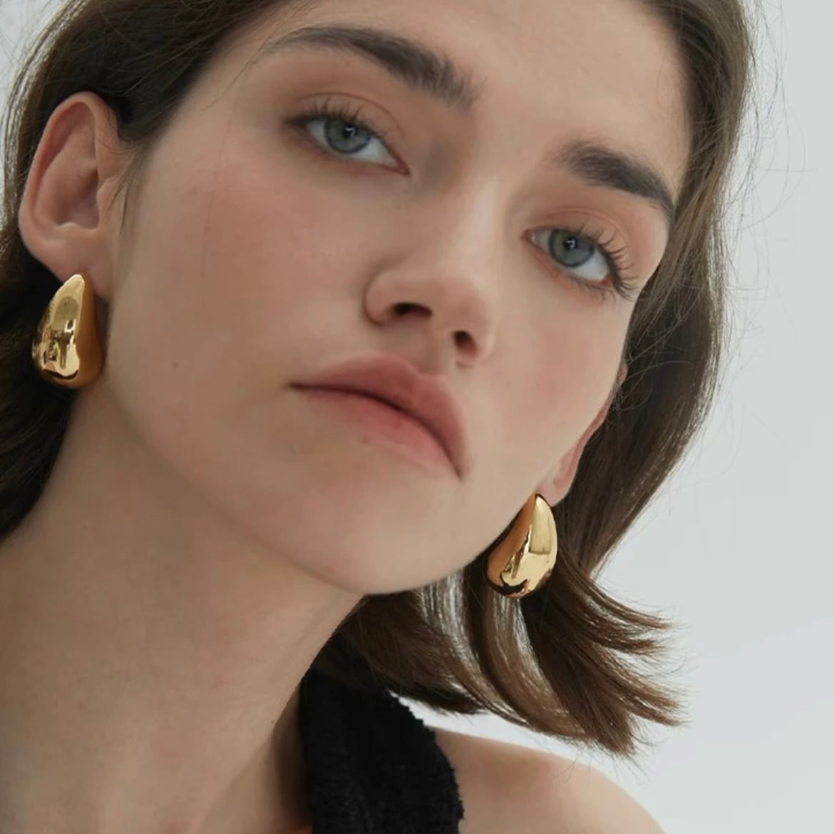 31mm中サイズのドロップ型のステンレスピアス。シンプルなファッションでもこのピアスを付けるとこなれた感じに。