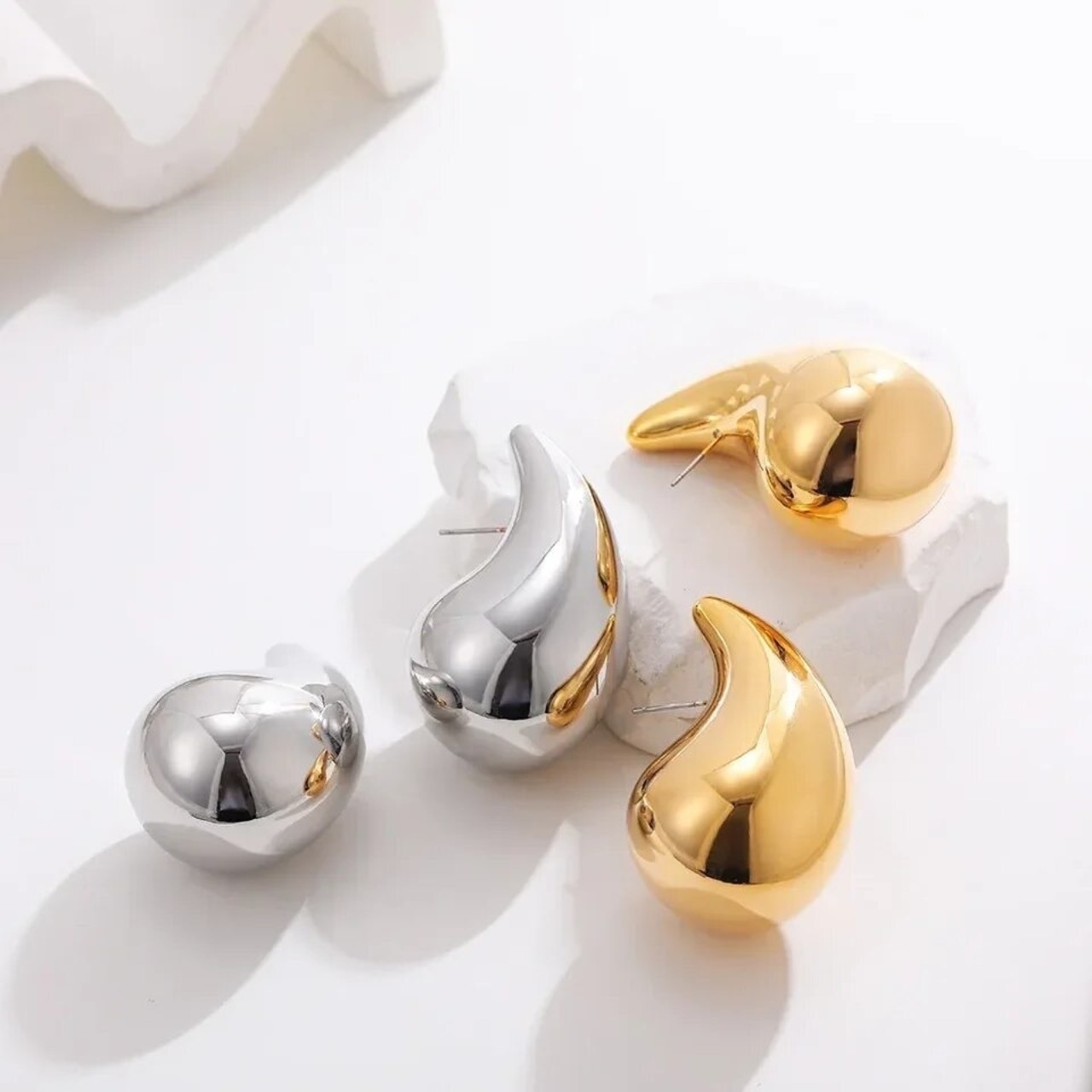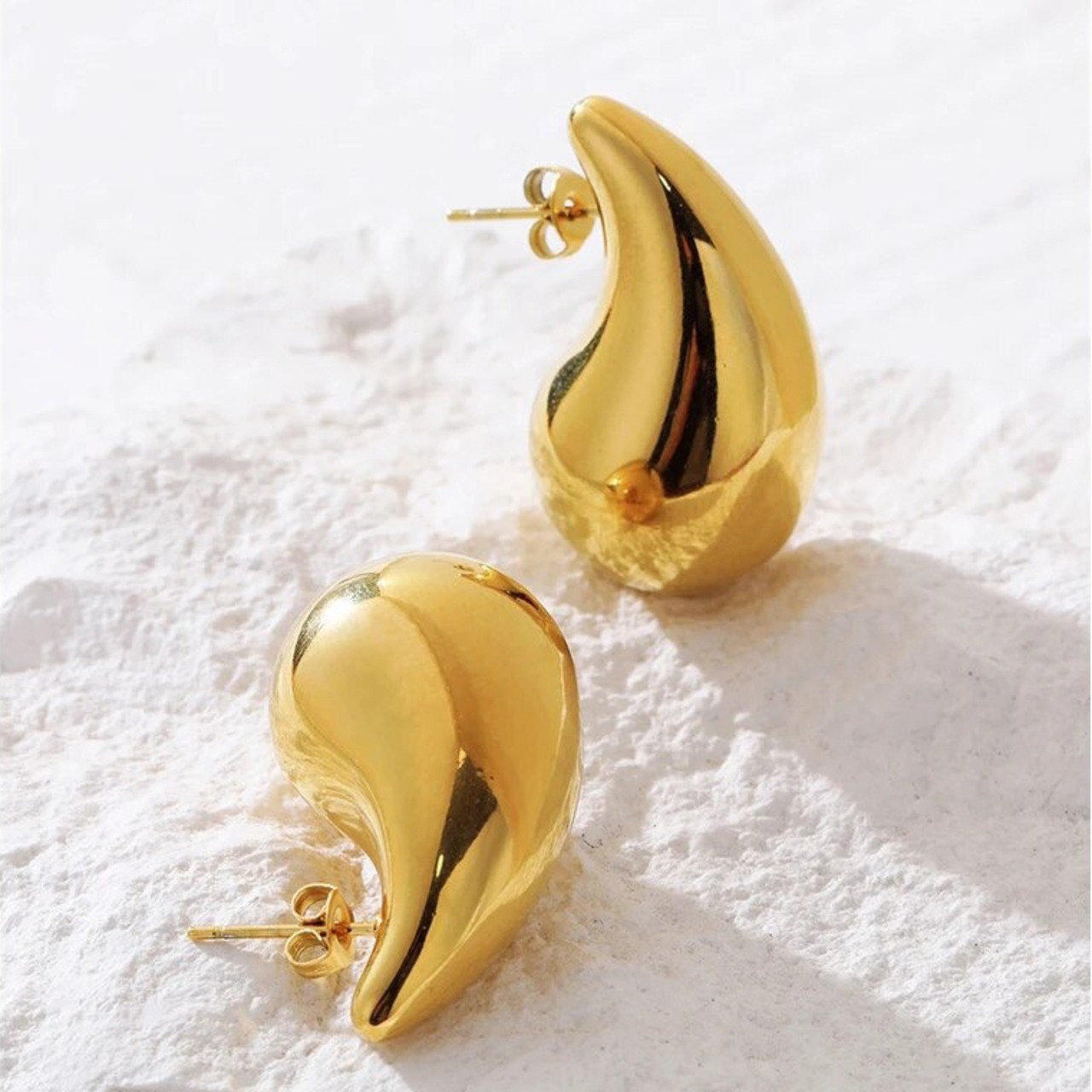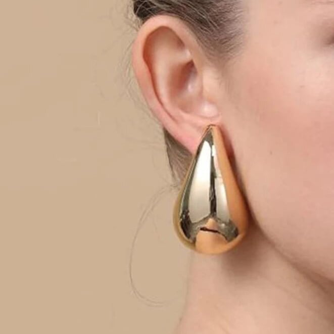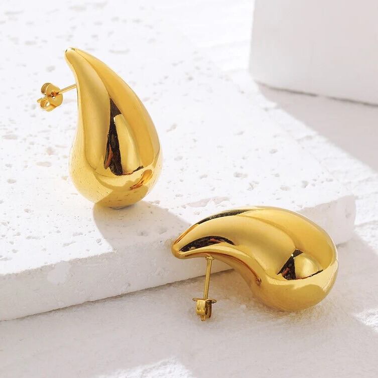 48mm大サイズのドロップ型のステンレスピアス。印象的でボリュームがあって着けるだけでおしゃれ上級者になるアイテム。