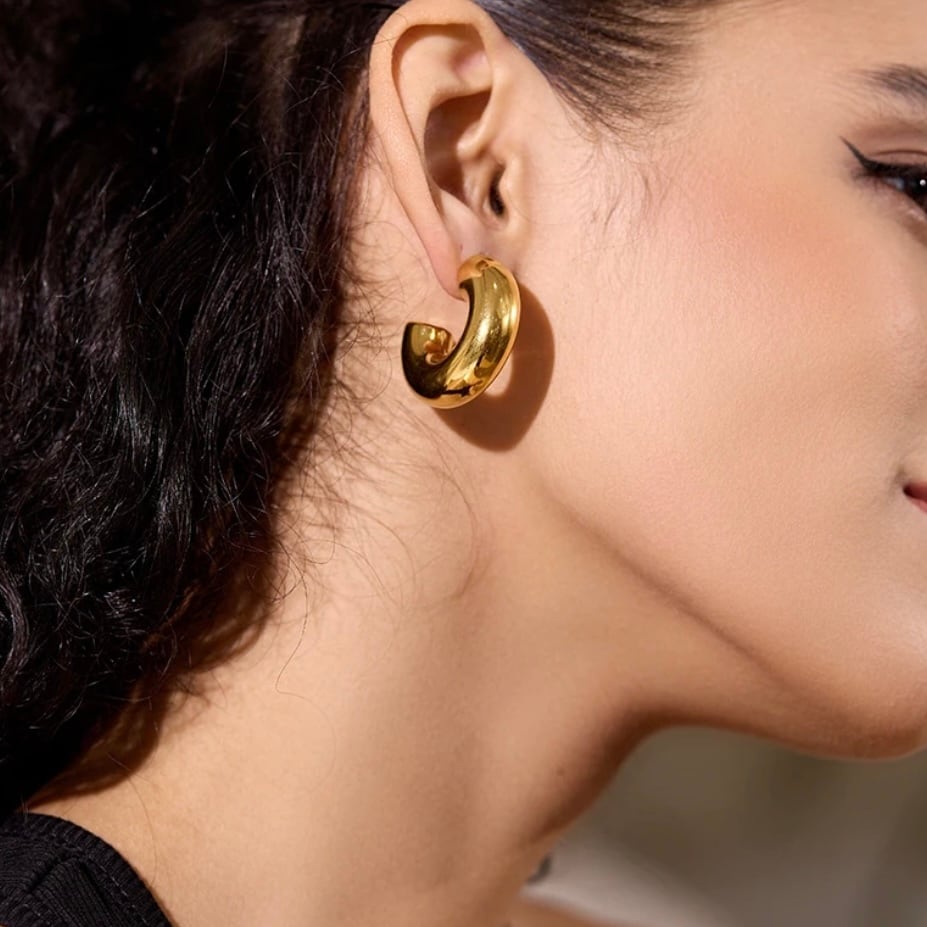 どんなファッションにも合うステンレスピアス。シンプルなファッションでもこのピアスを付けるとこなれた感じに。