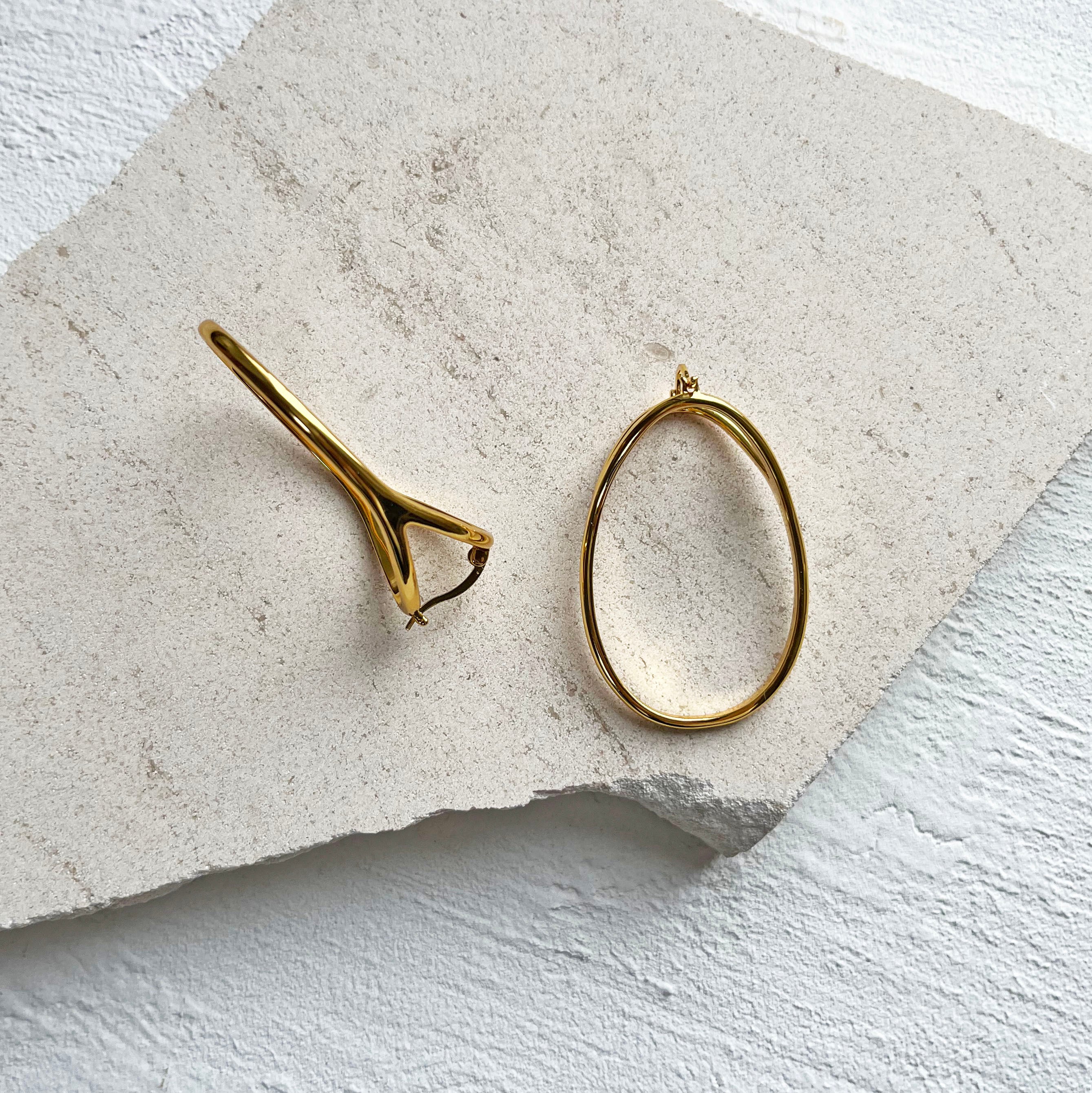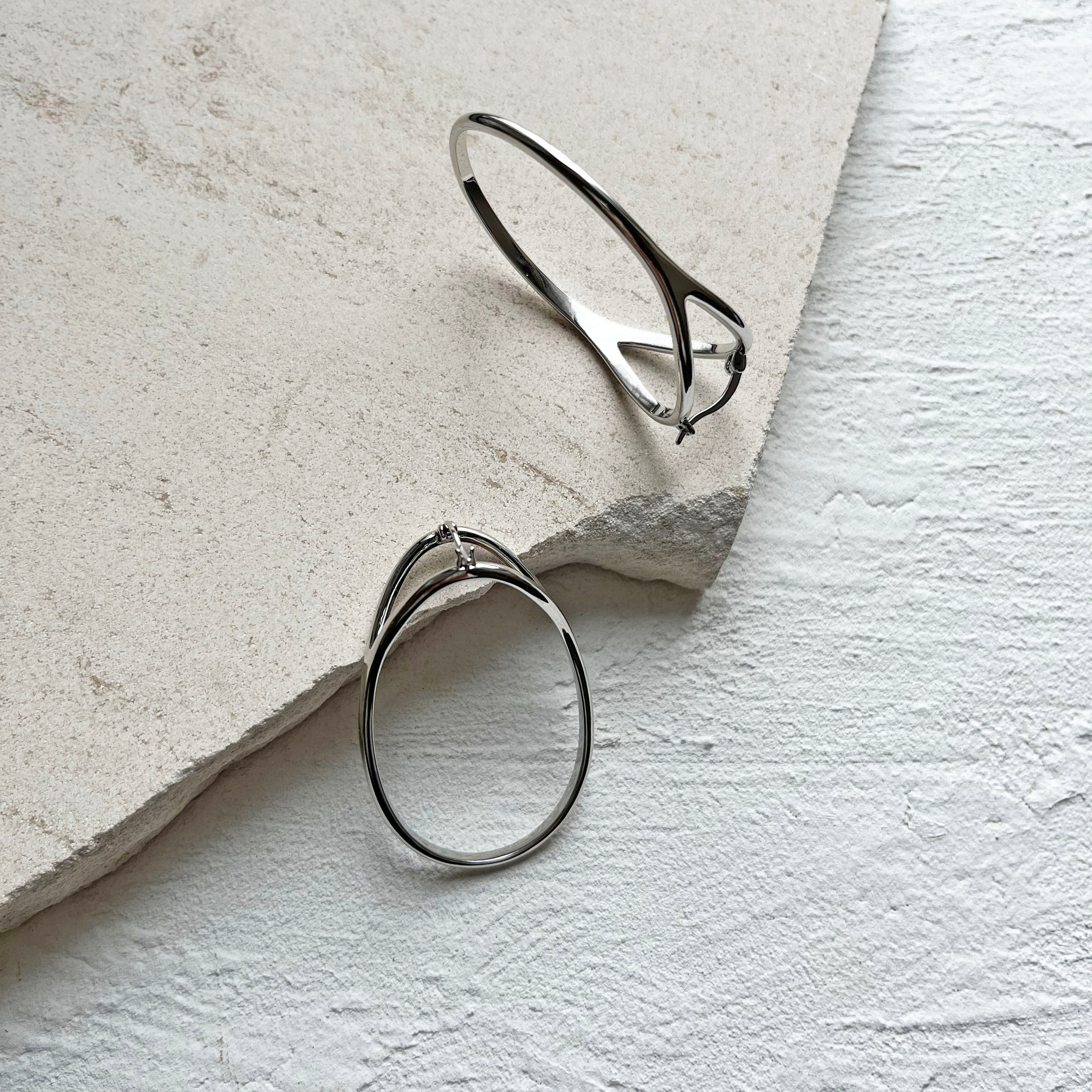 シンプルで華奢なドロップフープピアス。耳を挟むようなデザインが印象的で周りと差を付けるハイセンスなピアスです。