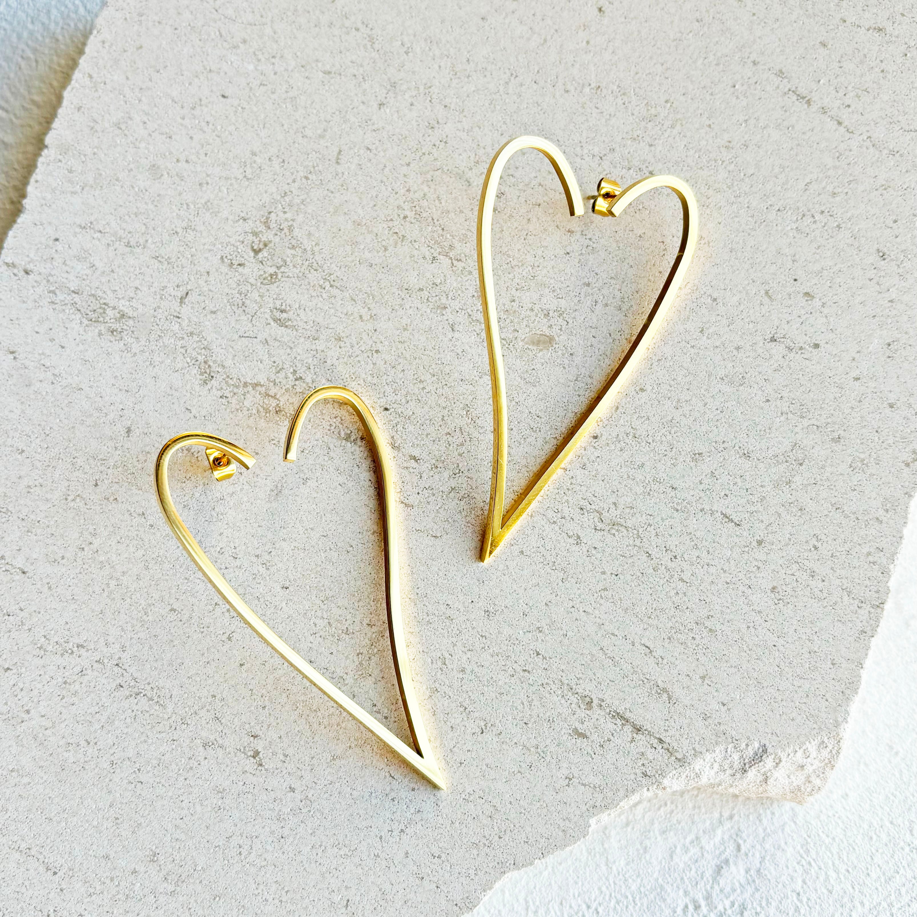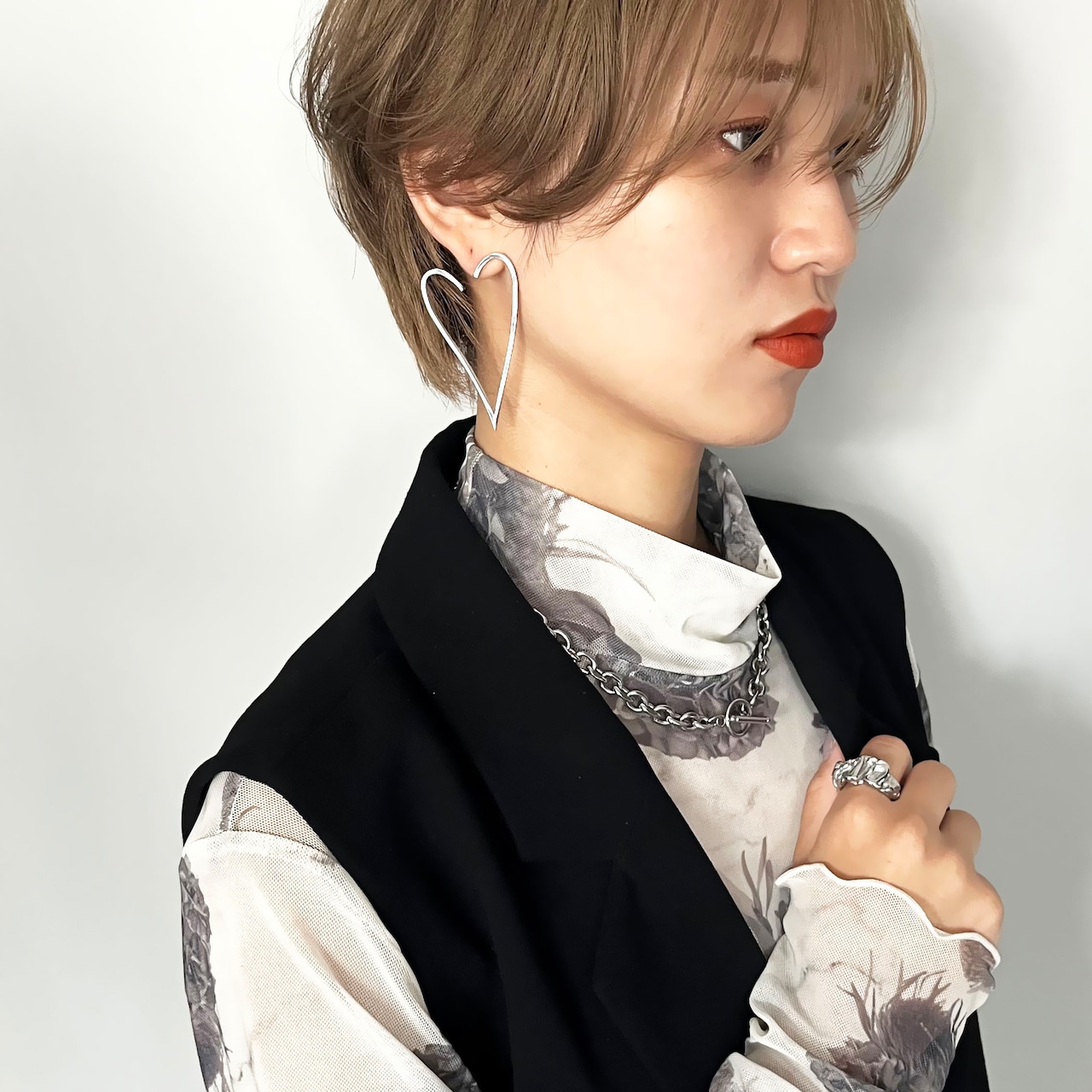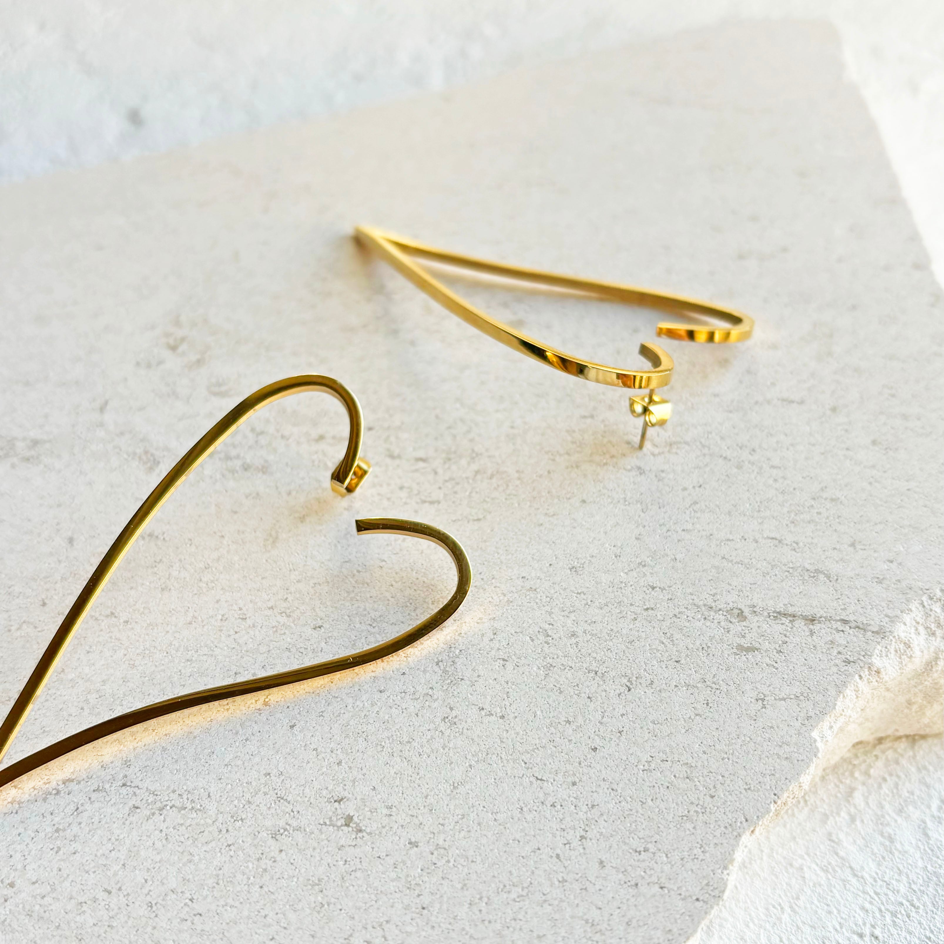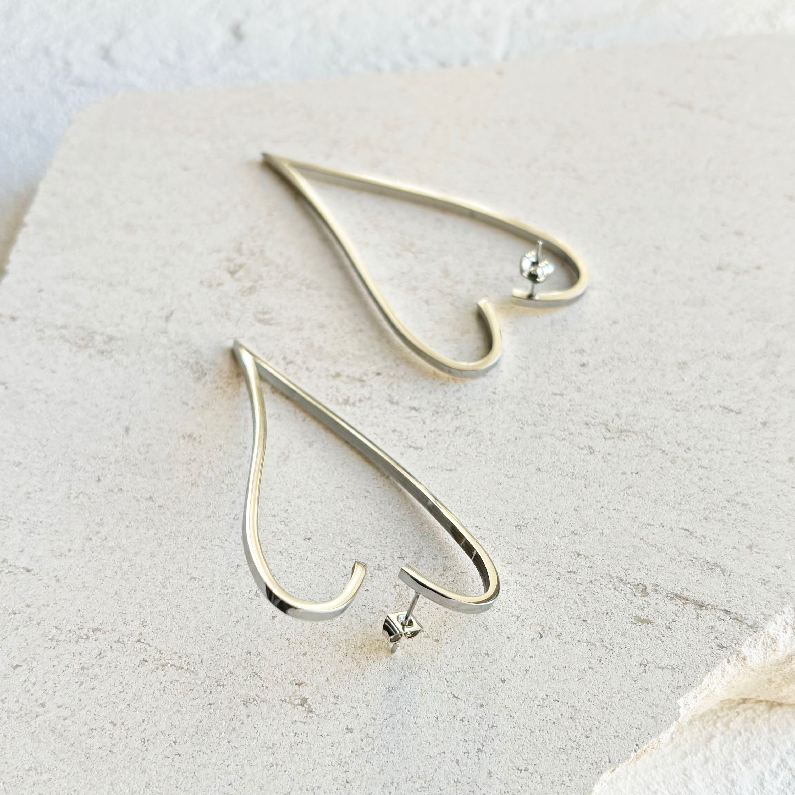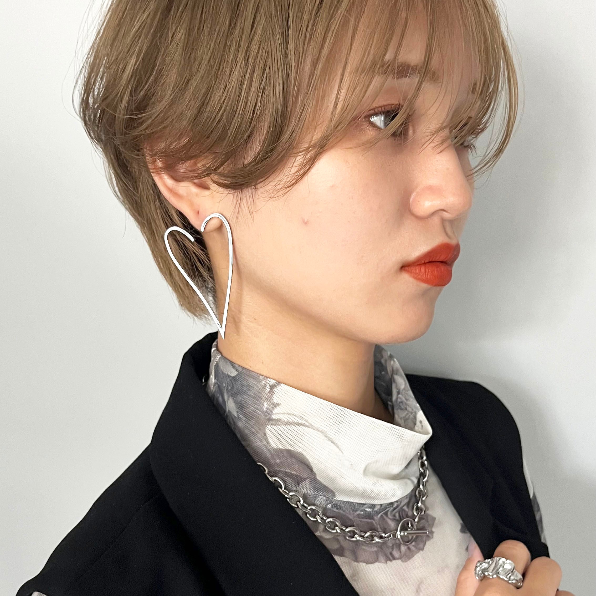 華奢なラインのハートピアス。繊細で甘すぎない大人かわいいデザインのステンレスピアスです。