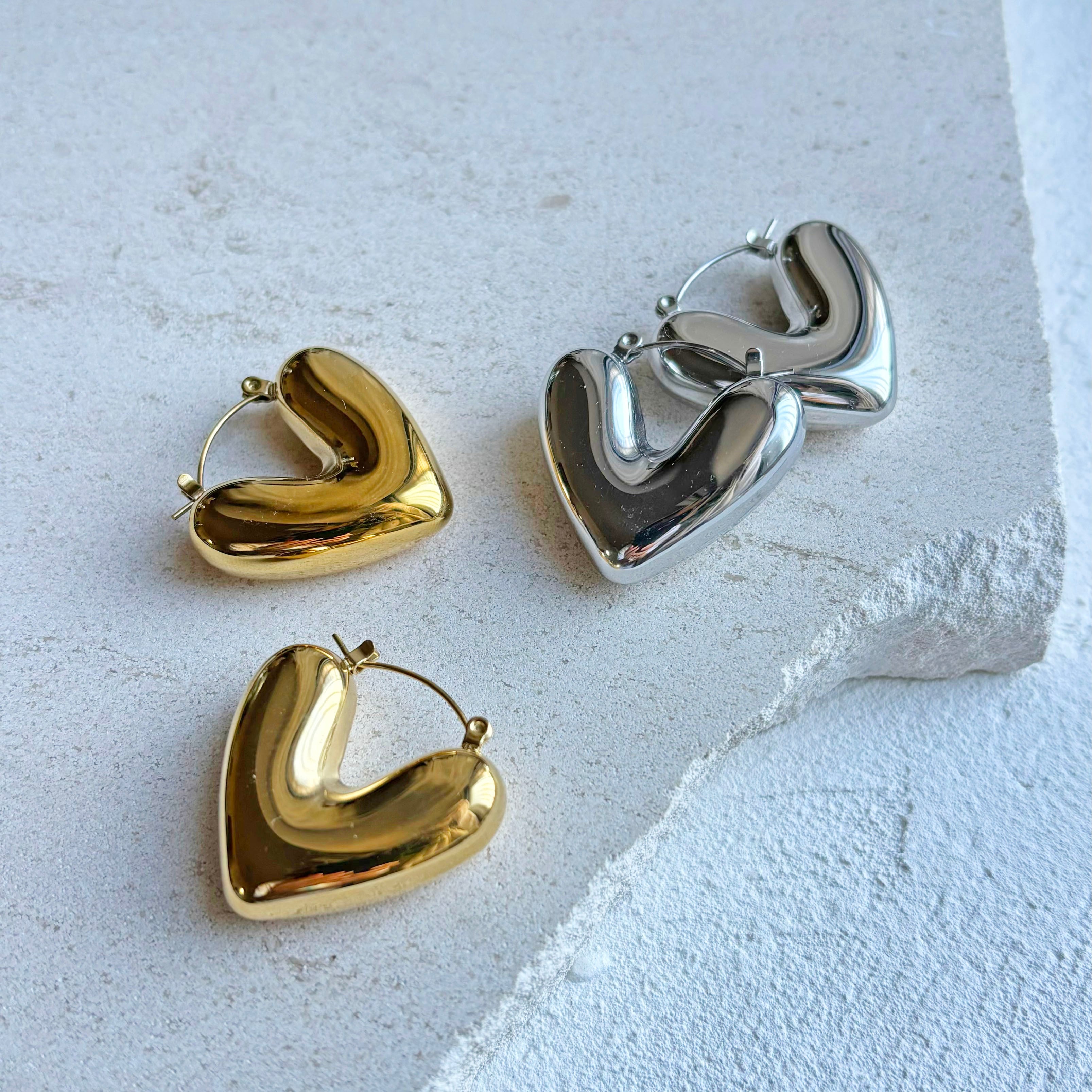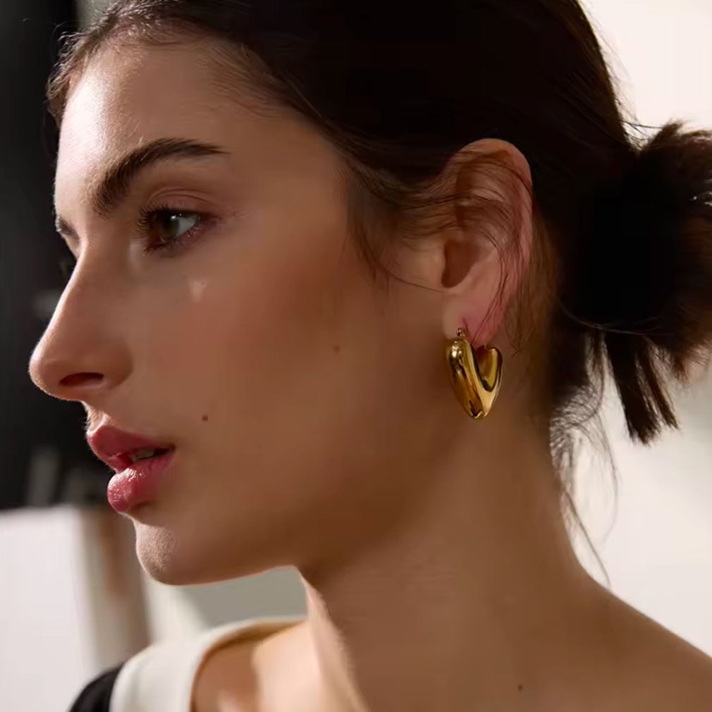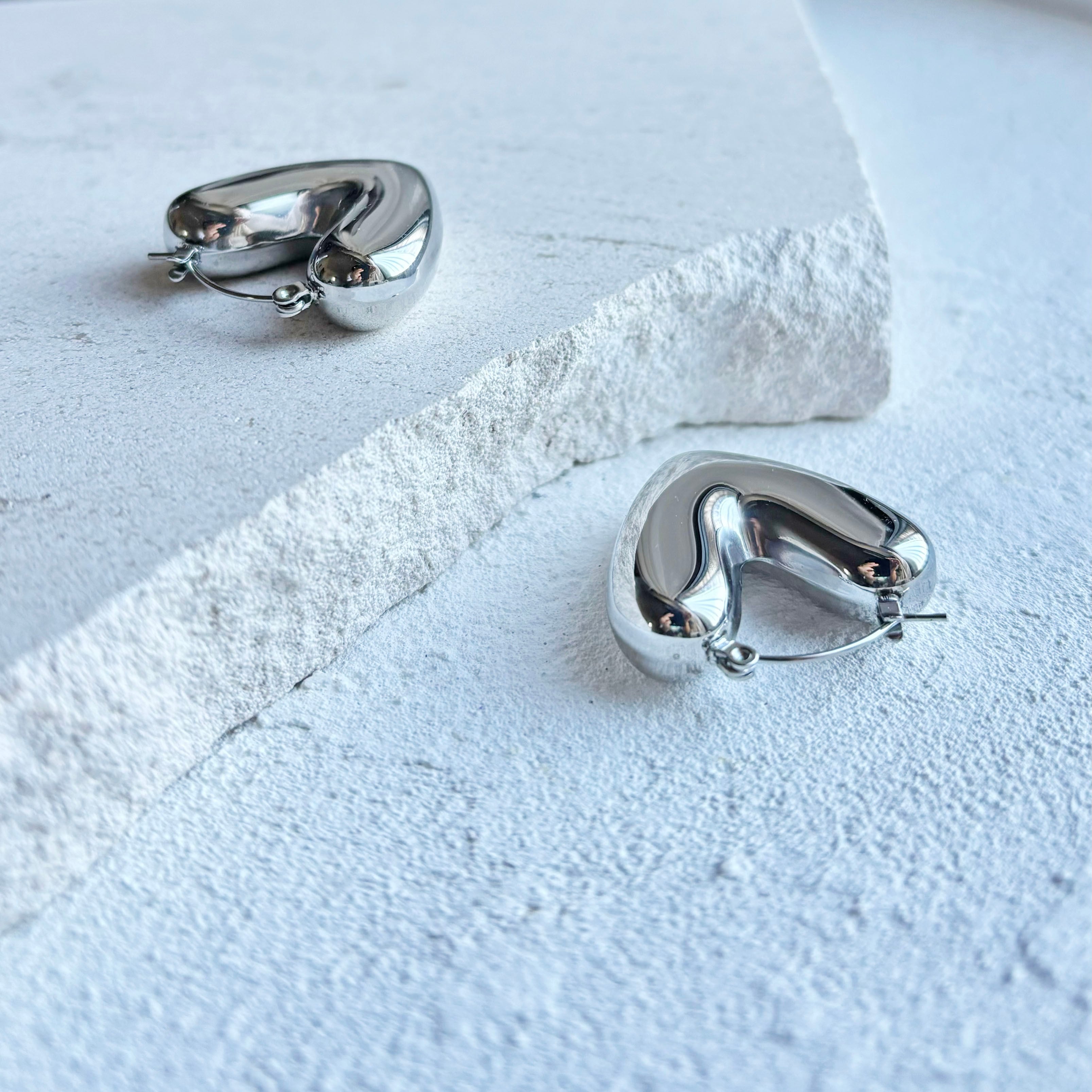 ハート型のステンレスピアス。横から見るとハートに見えるので、抵抗感無くハートのピアスを着用いただけます。キャッチも無くワンタッチでつけられるので便利!着けている事を忘れるくらい軽く、ピアスポストも細くて着けごごちのいいステンレスピアスです。