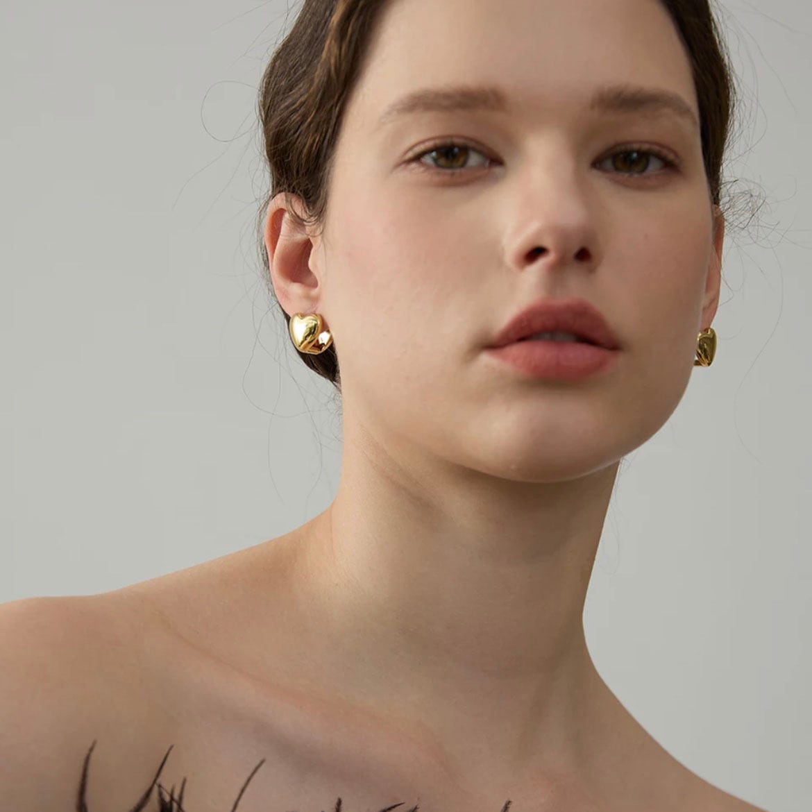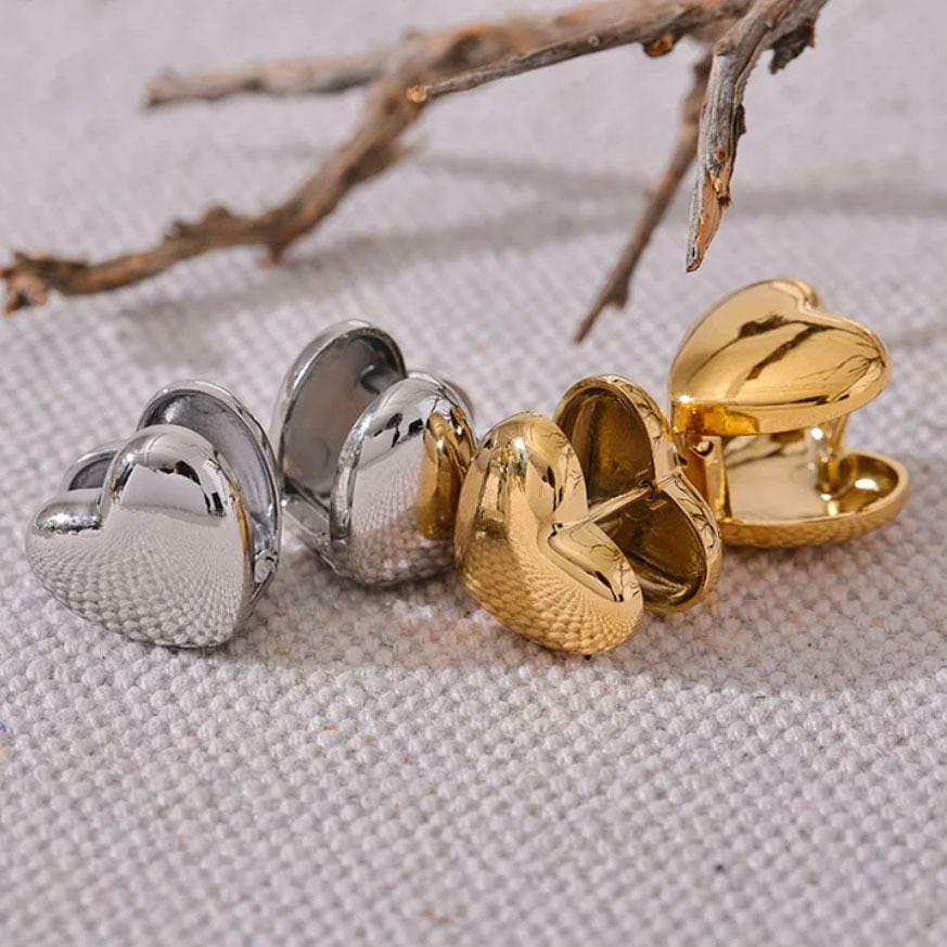 ハート型のステンレスピアス。小ぶりで可愛らしく、デザインもシンプルでファッションを選ばずご着用いただけます。ワンタッチタイプだから着脱も簡単です。